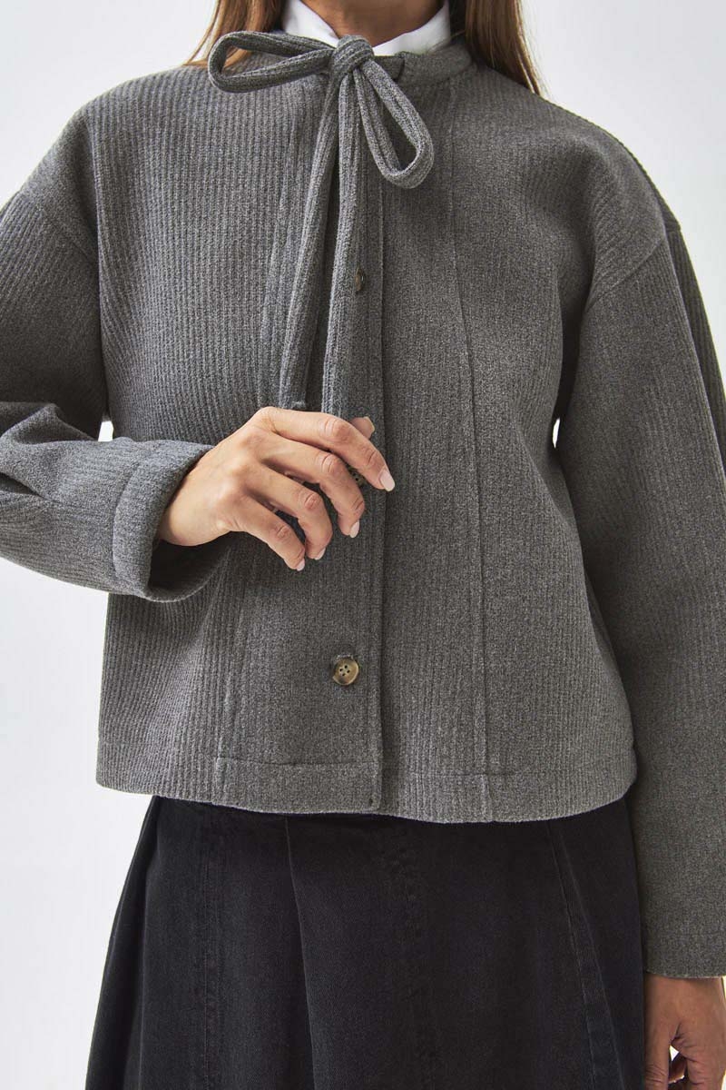 Tie Neck Short Jacket Grey