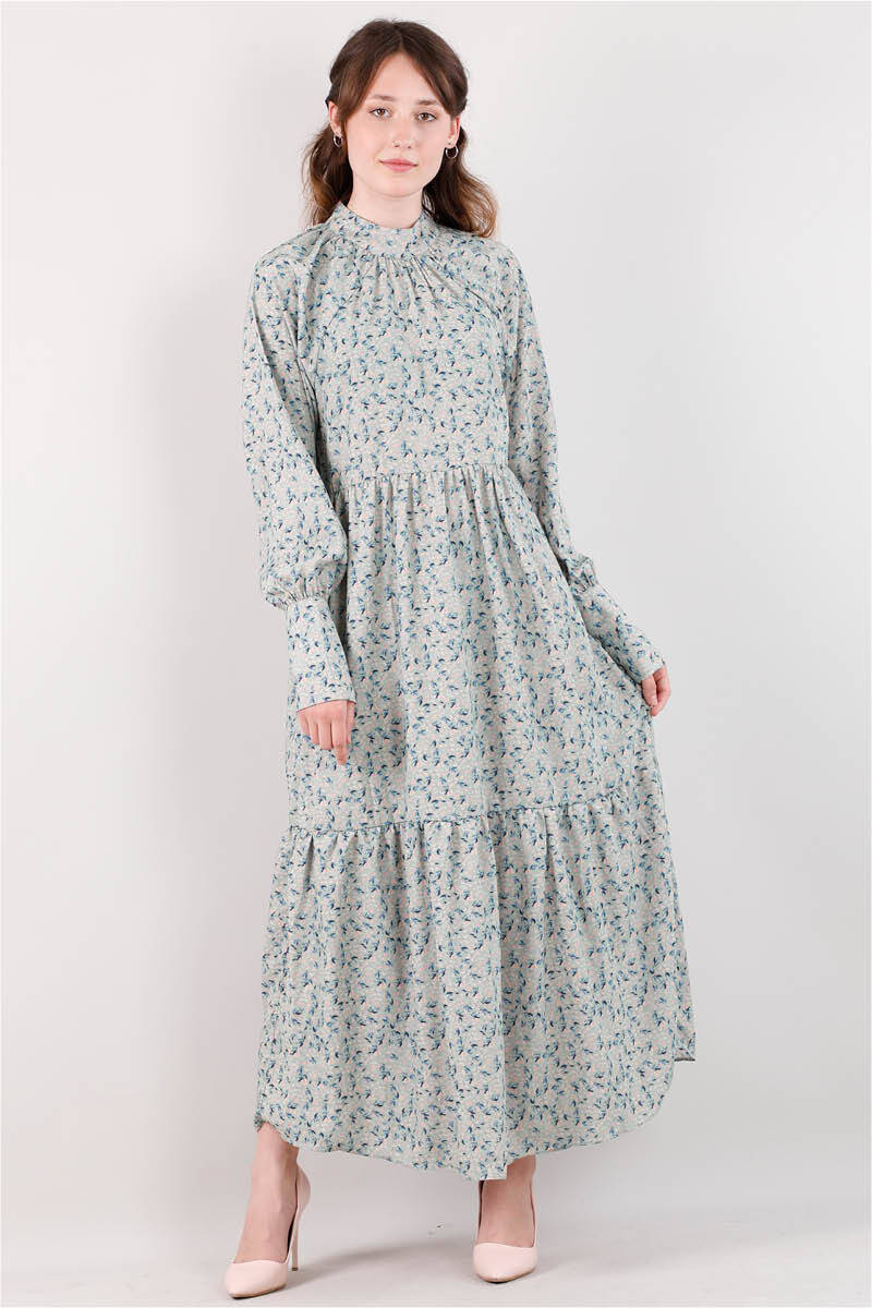 Yakası Büzgülü Elbise Mint
