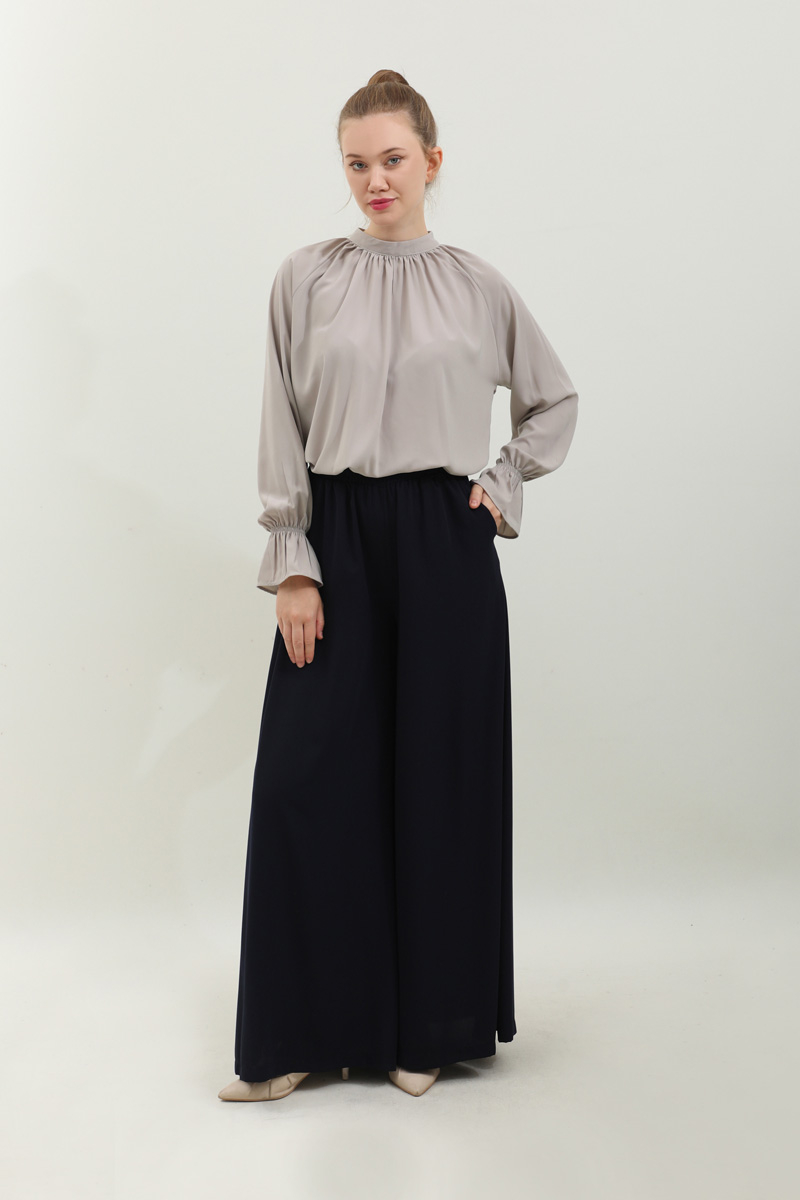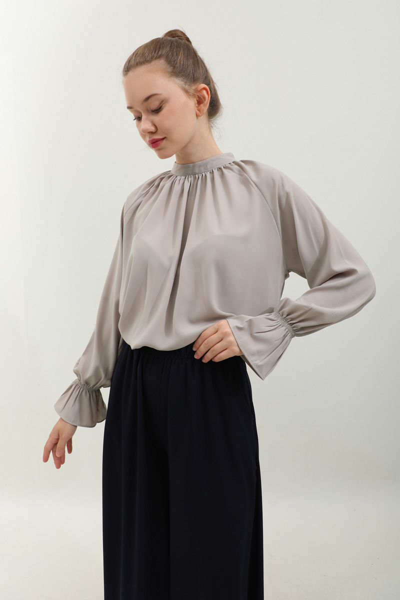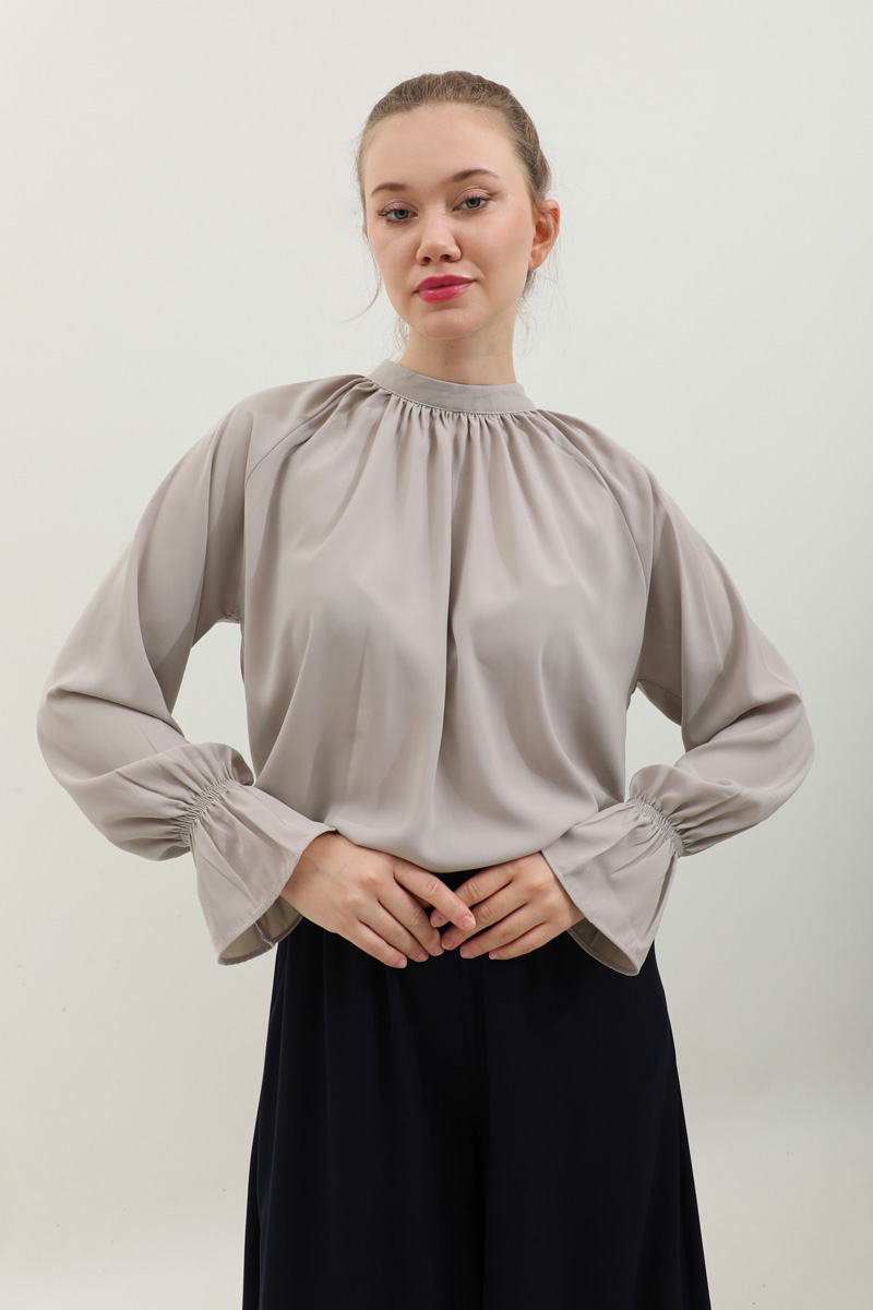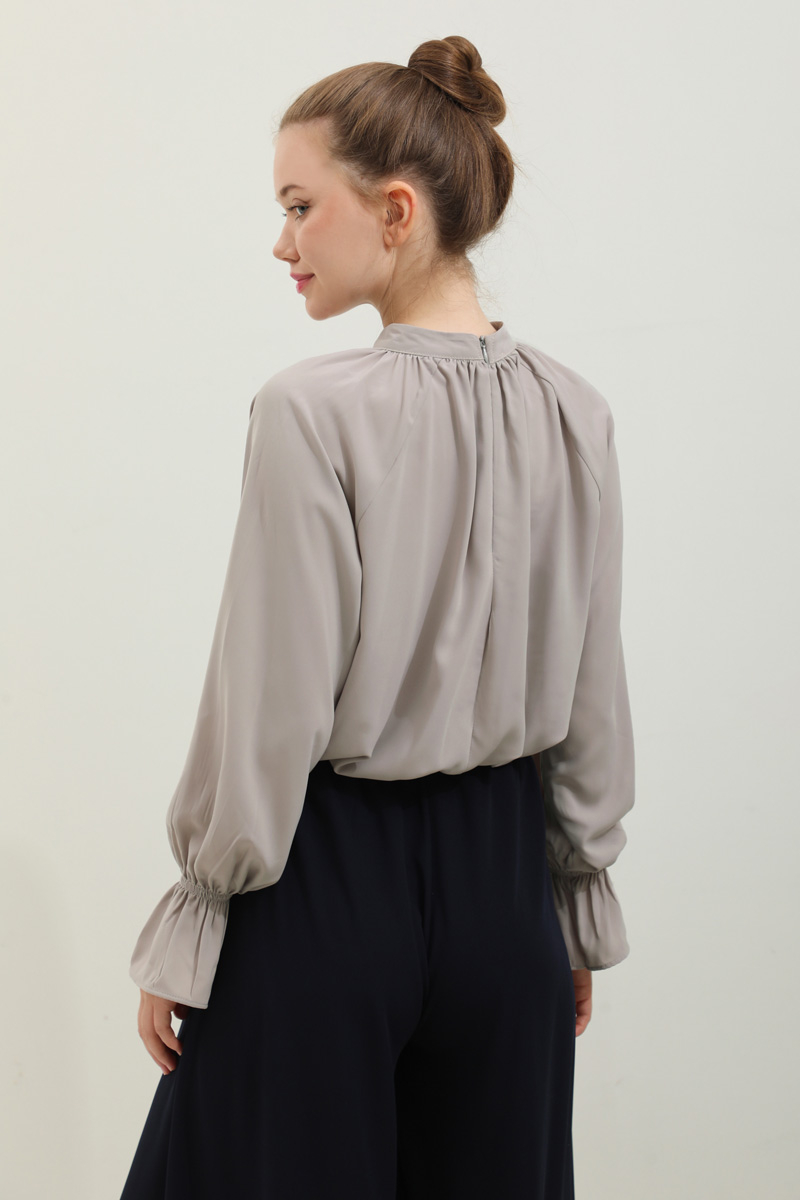 Yakası Büzgülü Gömlek Taş. Hakim yakalıdır, kolları lastiklidir, arkadan yarı fermuarlıdır, yakası büzgülü, kol manşeti volanlıdır, günlük ve özel günlerde kullanıma uygundur, etek ve pantolon kombinlerinizde tercih edebilirsiniz.