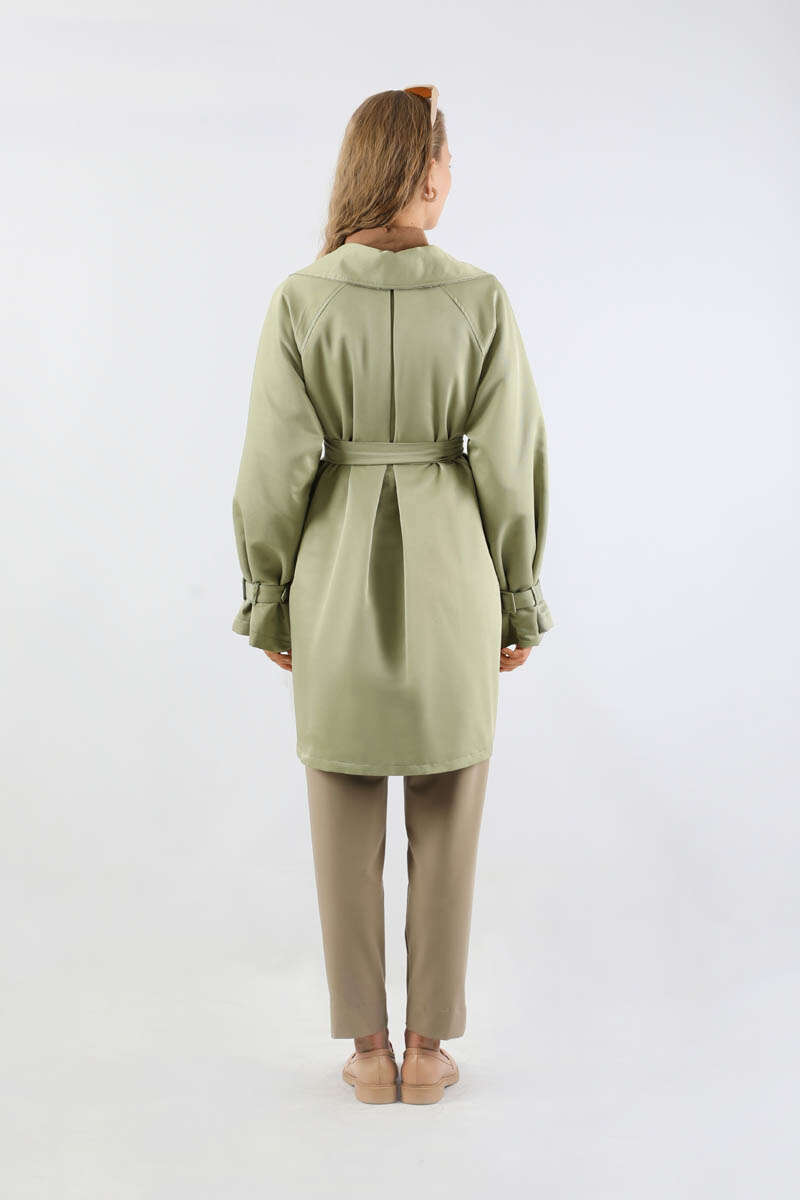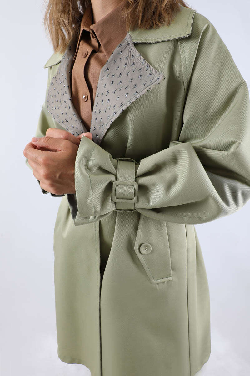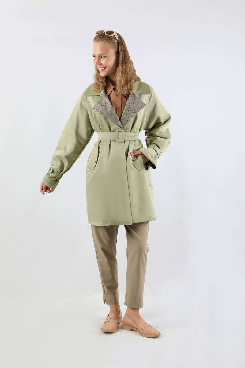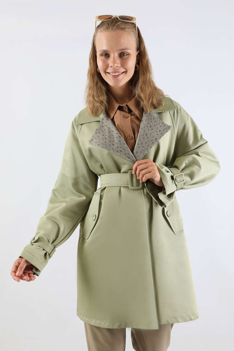 Yakası Desenli Midi Trençkot Mint
