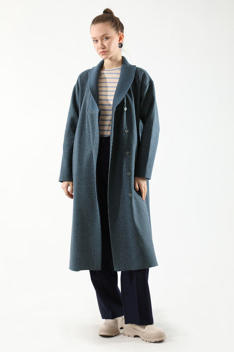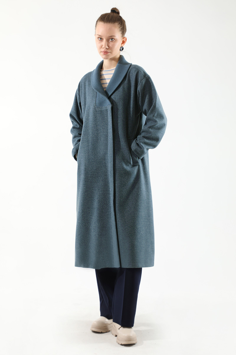Yakası Ribanalı Kaşe Kaban İndigo