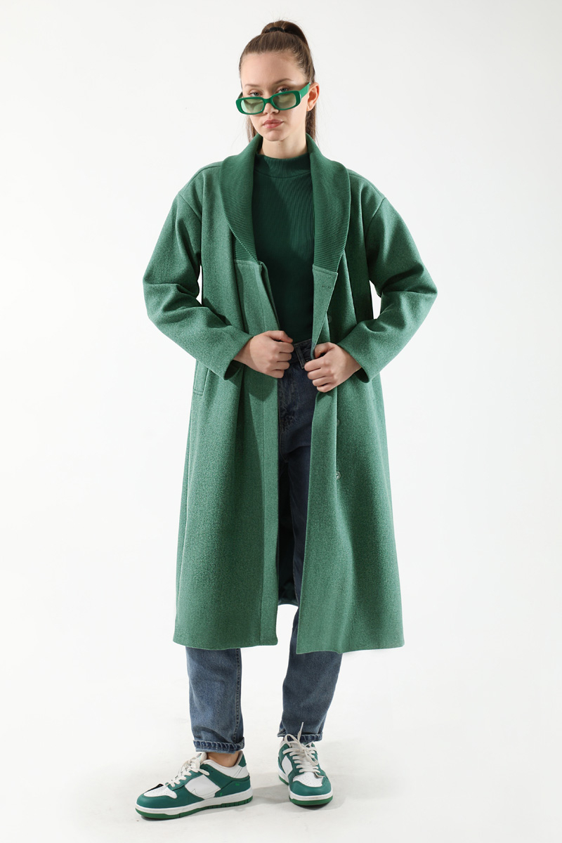 Yakası Ribanalı Kaşe Kaban Mint