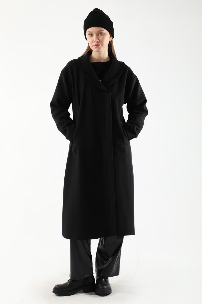 Yakası Ribanalı. Gizli kruvaze kapama.Yandan cepli. Astarlı.