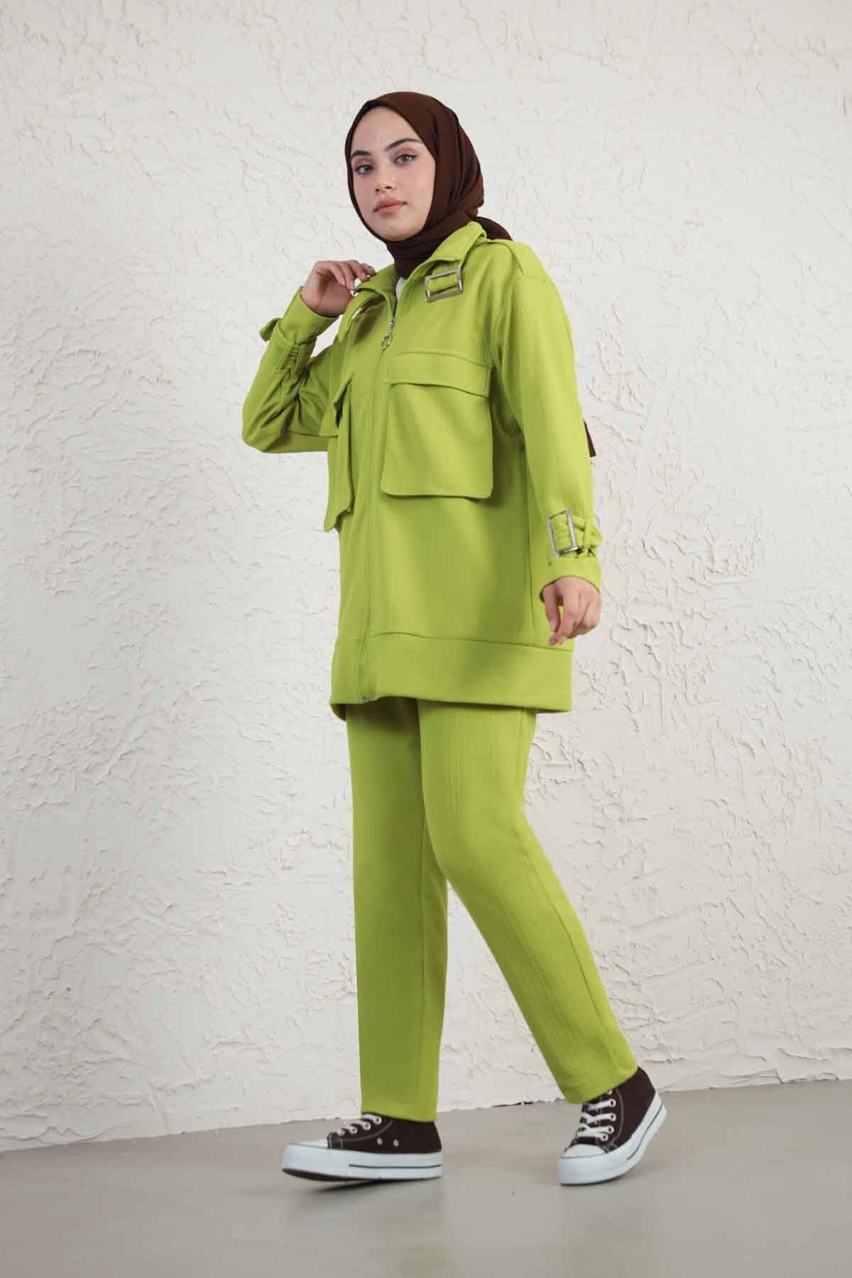 Yakası Tokalı İkili Takım Yağ Yeşili