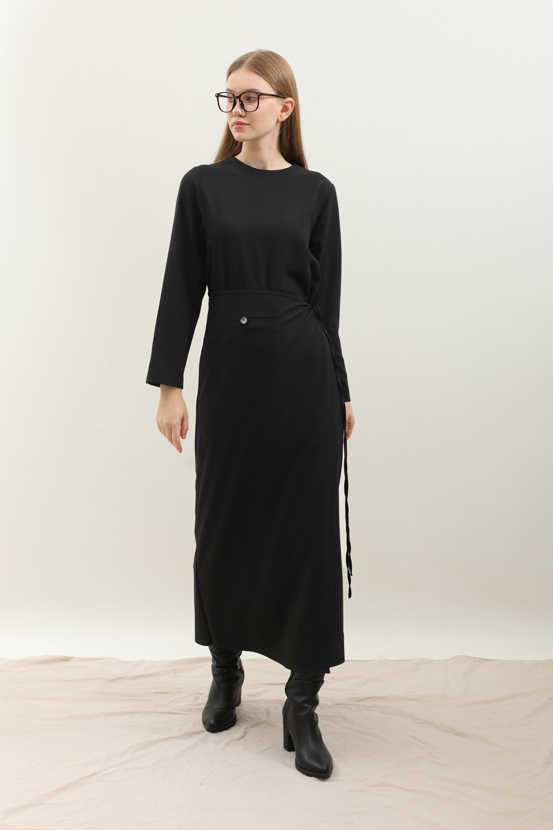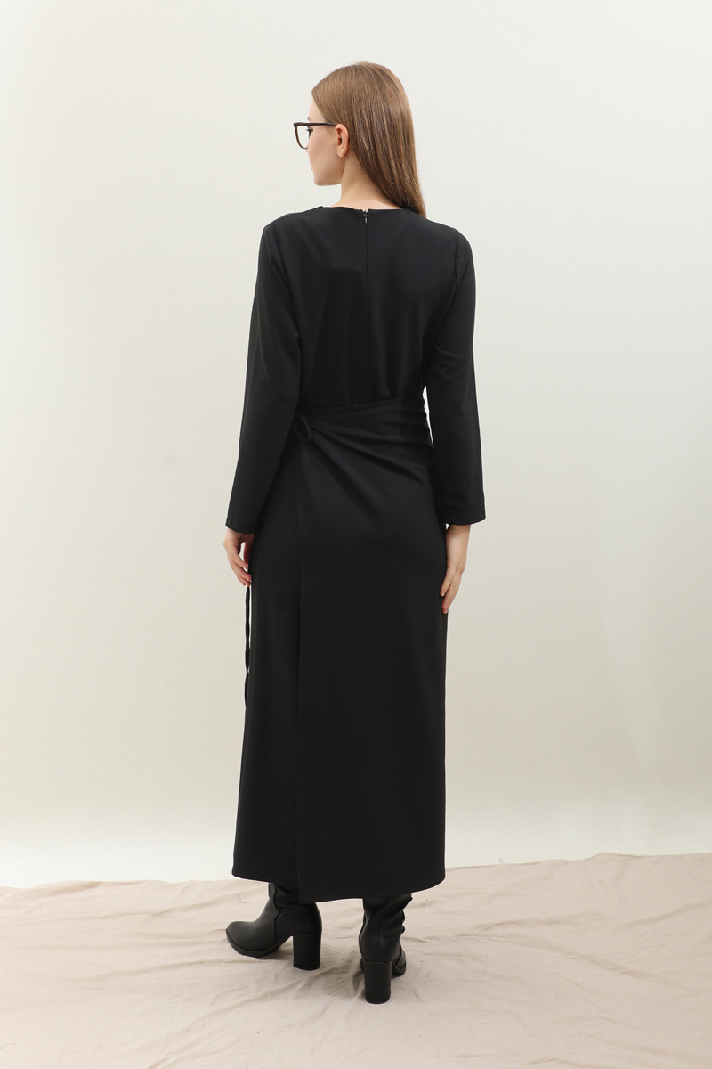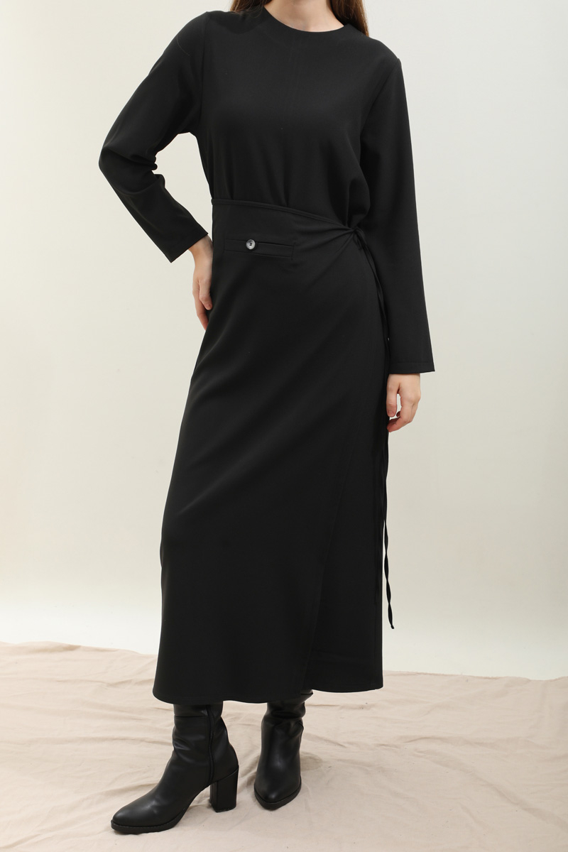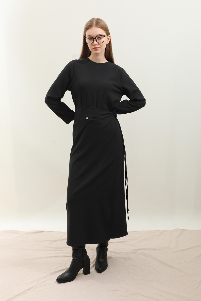 Yandan Bağlamalı Etekli Elbise Siyah. Bisiklet yakadır, arkadan fermuarlıdır, belden etek bağlamalıdır. etek kısmında cep aksesuarı vardır. Astarsızdır. Günlük kullanım ve özel günlerinizde tercih edebilirsiniz.