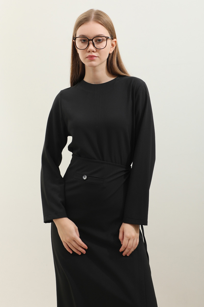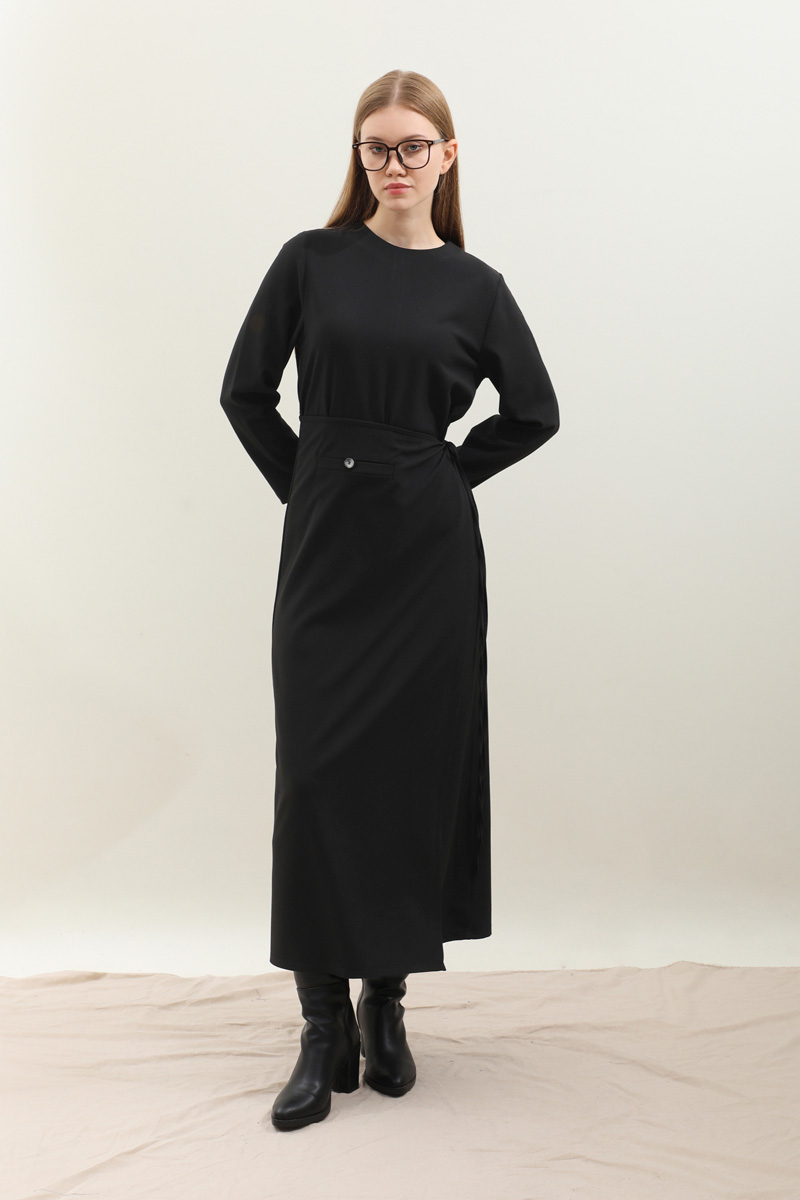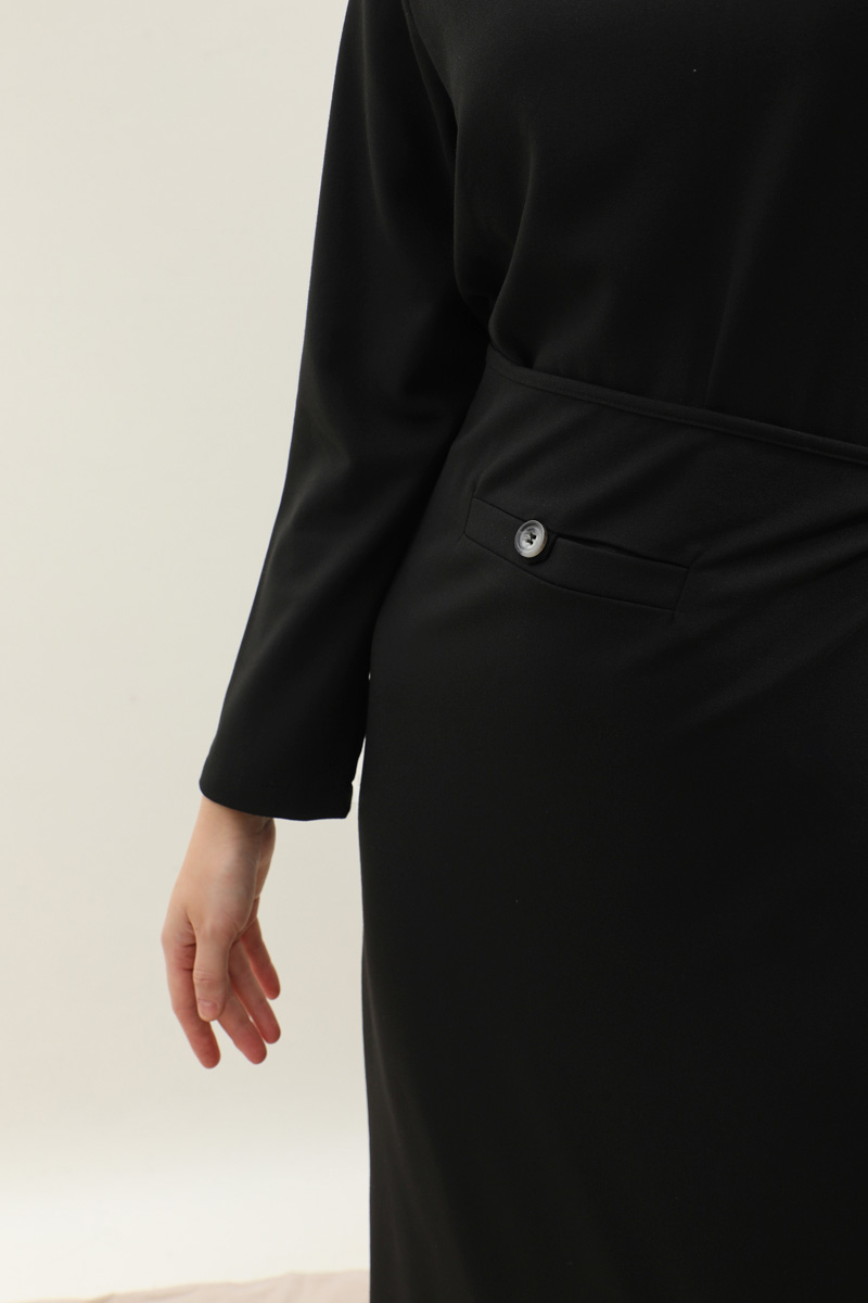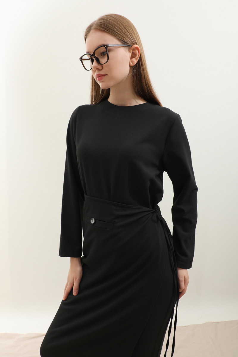 Yandan Bağlamalı Etekli Elbise Siyah. Bisiklet yakadır, arkadan fermuarlıdır, belden etek bağlamalıdır. etek kısmında cep aksesuarı vardır. Astarsızdır. Günlük kullanım ve özel günlerinizde tercih edebilirsiniz.