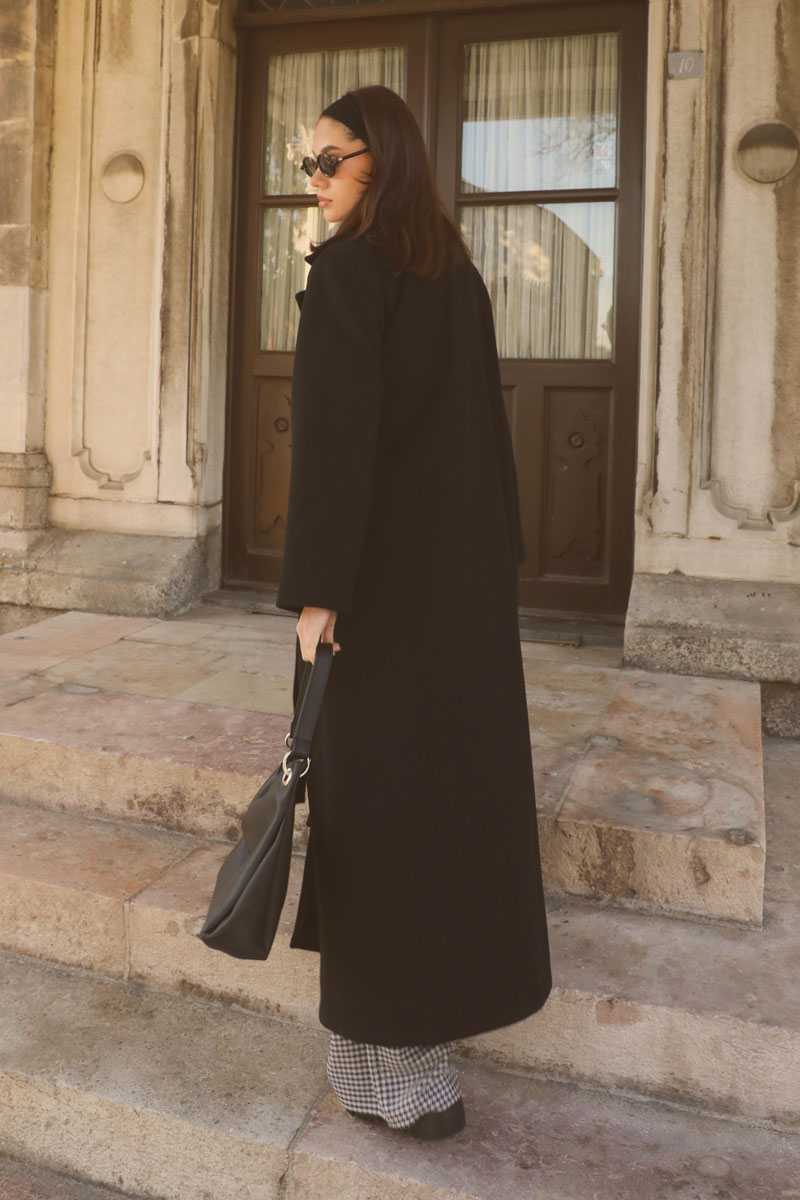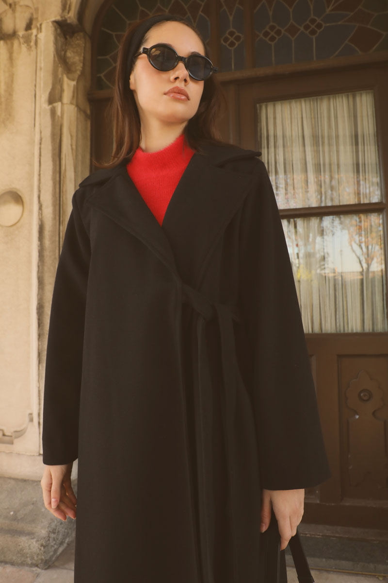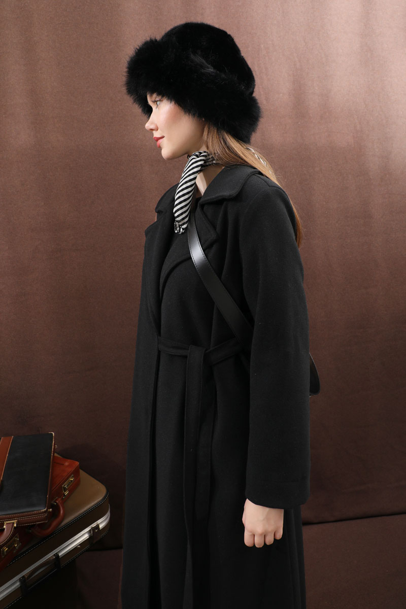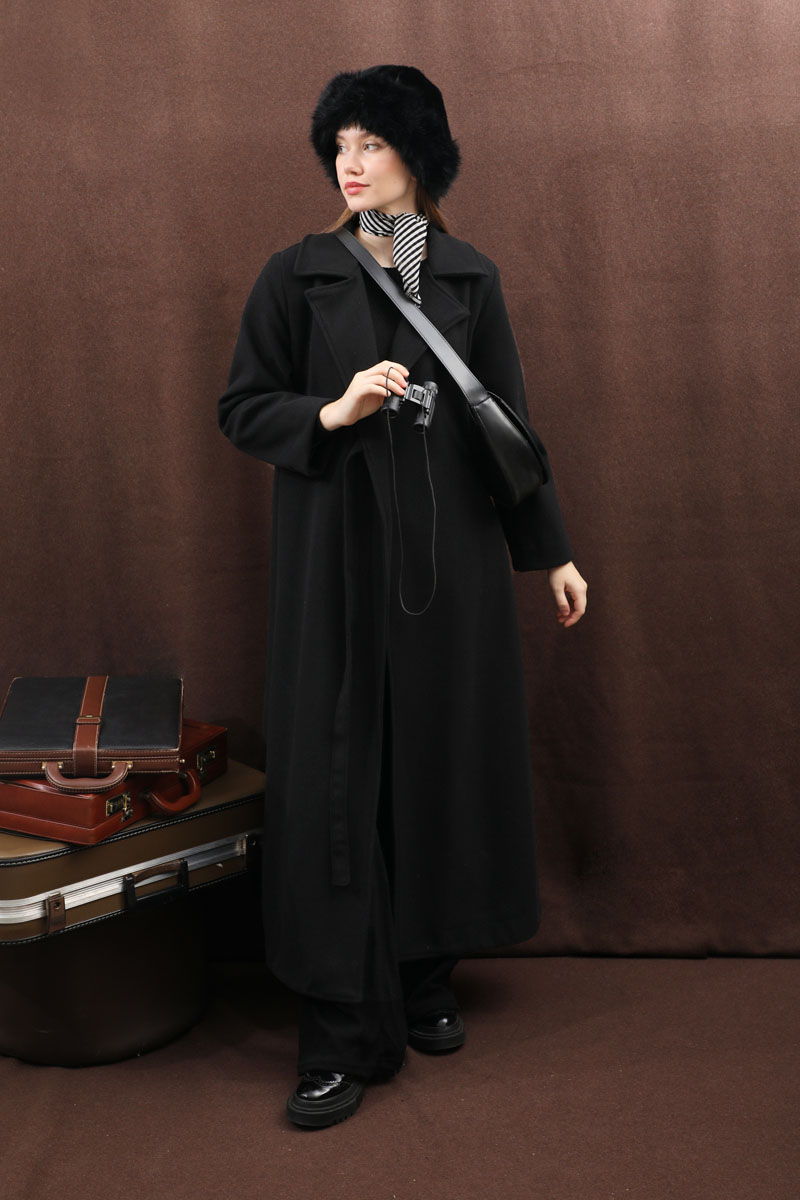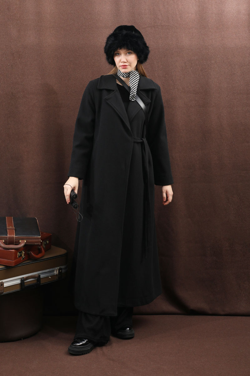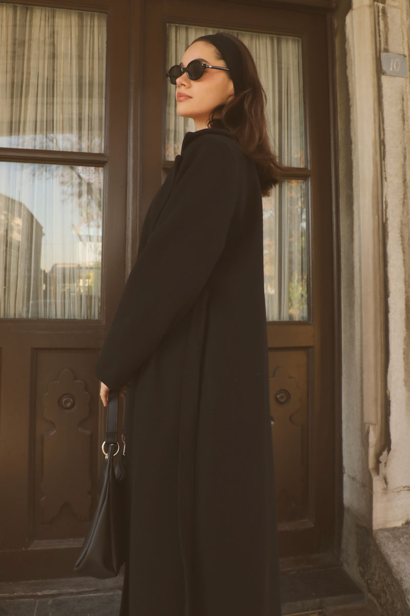 Yandan Bağlamalı Kaban Siyah. Kruvaze yakadır, vatkalıdır, düğmesizdir, yandan bağlamalıdır, gizli ceplidir, astarlıdır, hafif çan kesimdir. Günlük kullanım ve özel günlerinizde tercih edebilirsiniz.