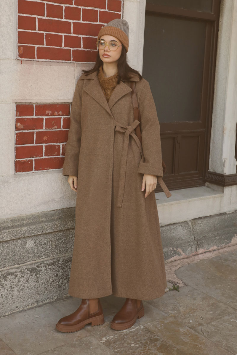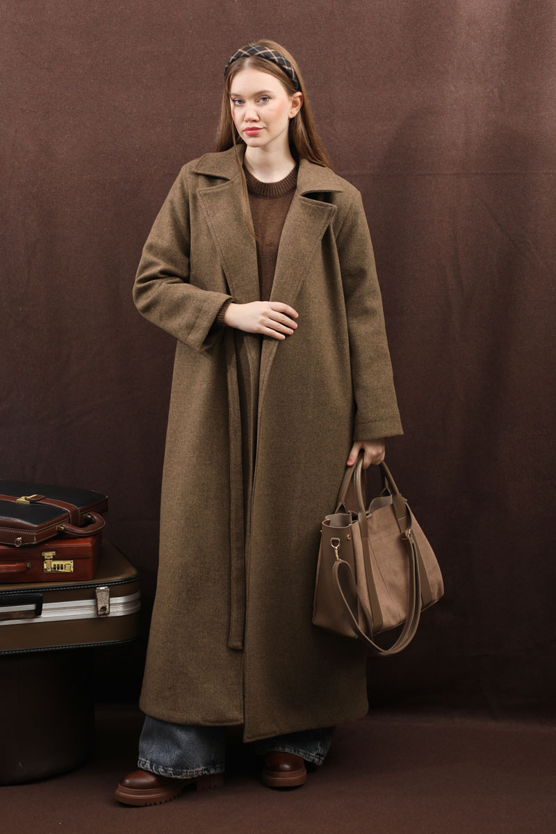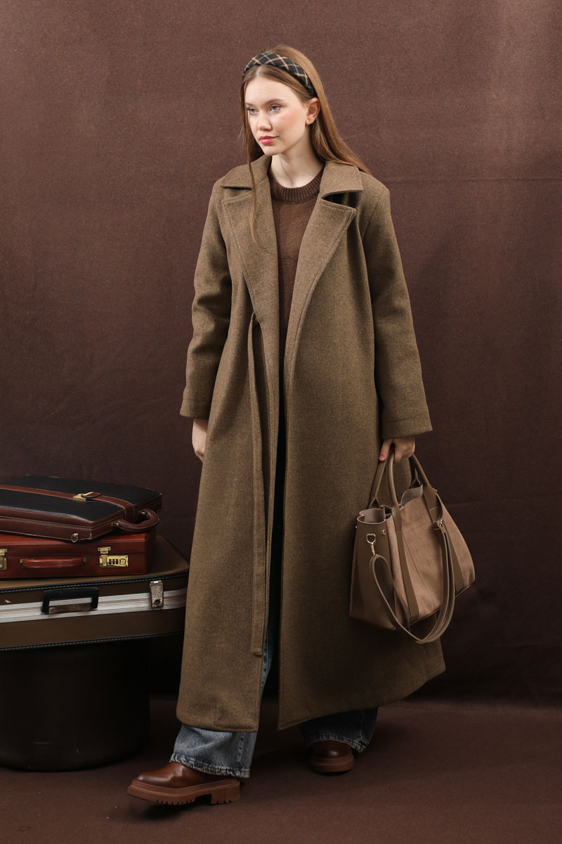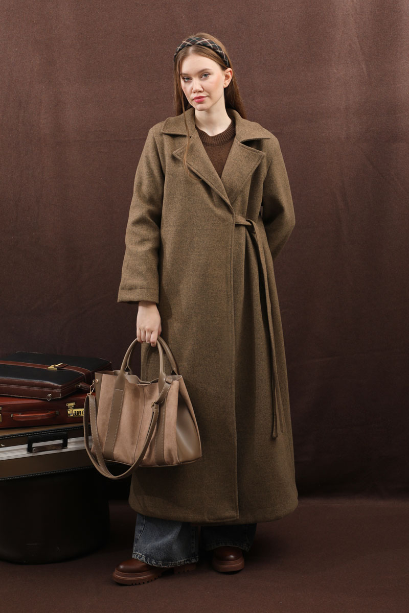 Yandan Bağlamalı Kaban Taba. Kruvaze yakadır, vatkalıdır, düğmesizdir, yandan bağlamalıdır, gizli ceplidir, astarlıdır, hafif çan kesimdir. Günlük kullanım ve özel günlerinizde tercih edebilirsiniz.