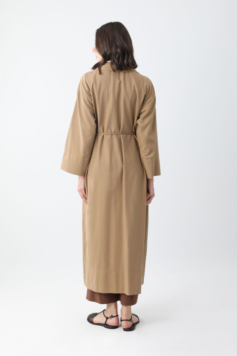 Bağlamalı Keten Trençkot Camel