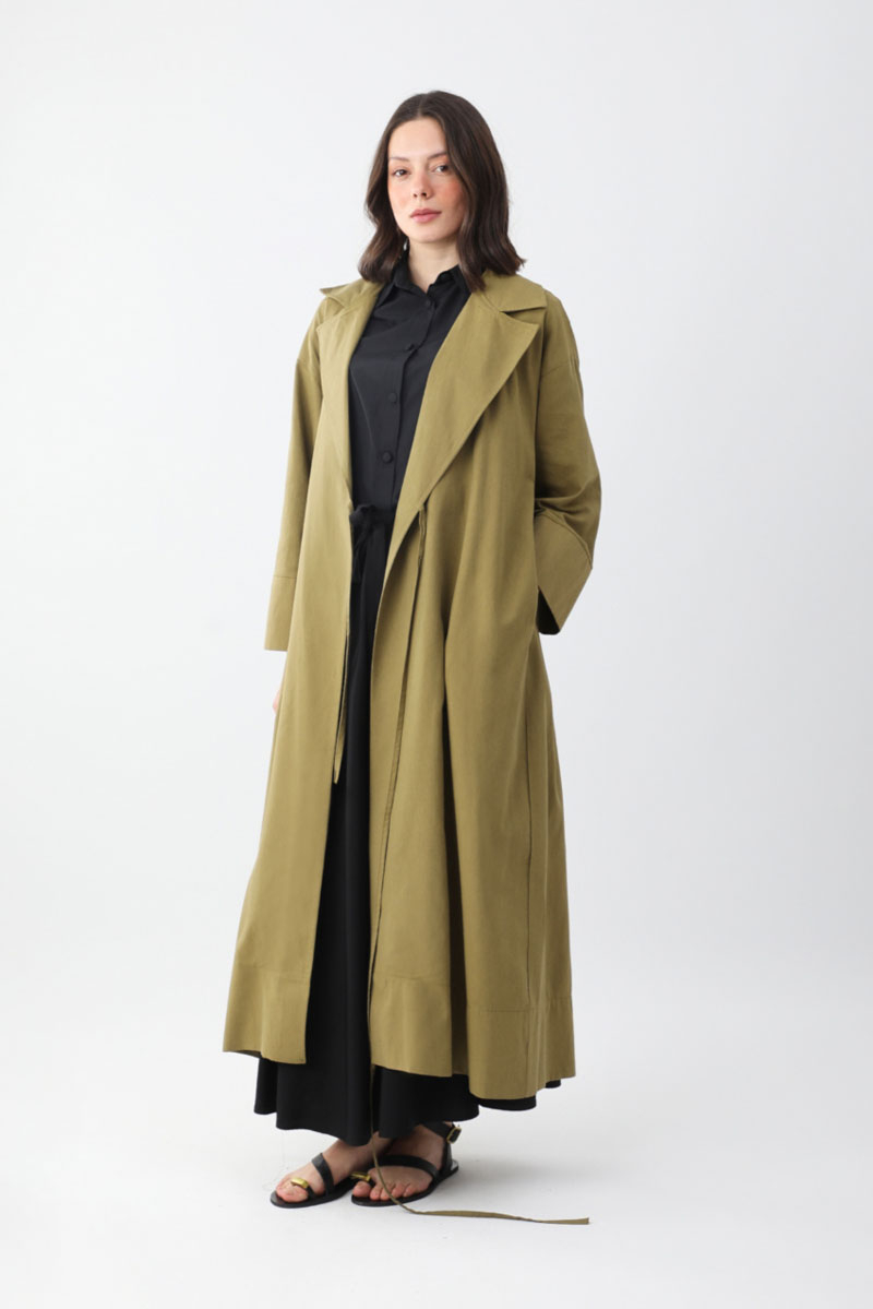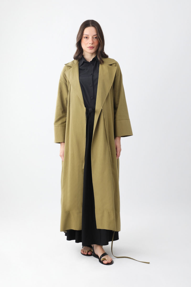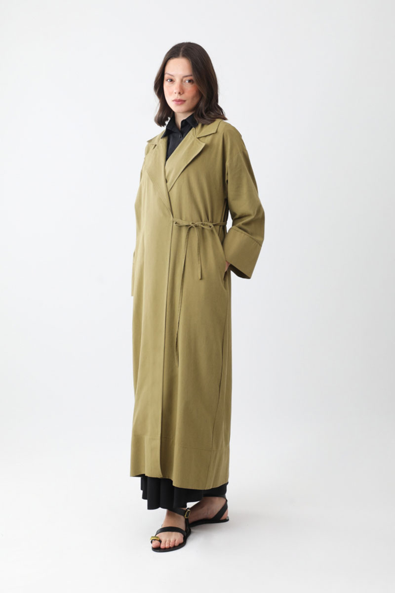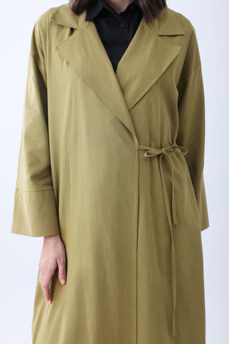 Bağlamalı Keten Trençkot Haki