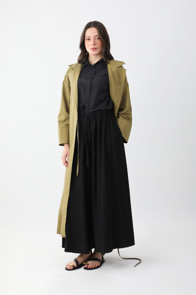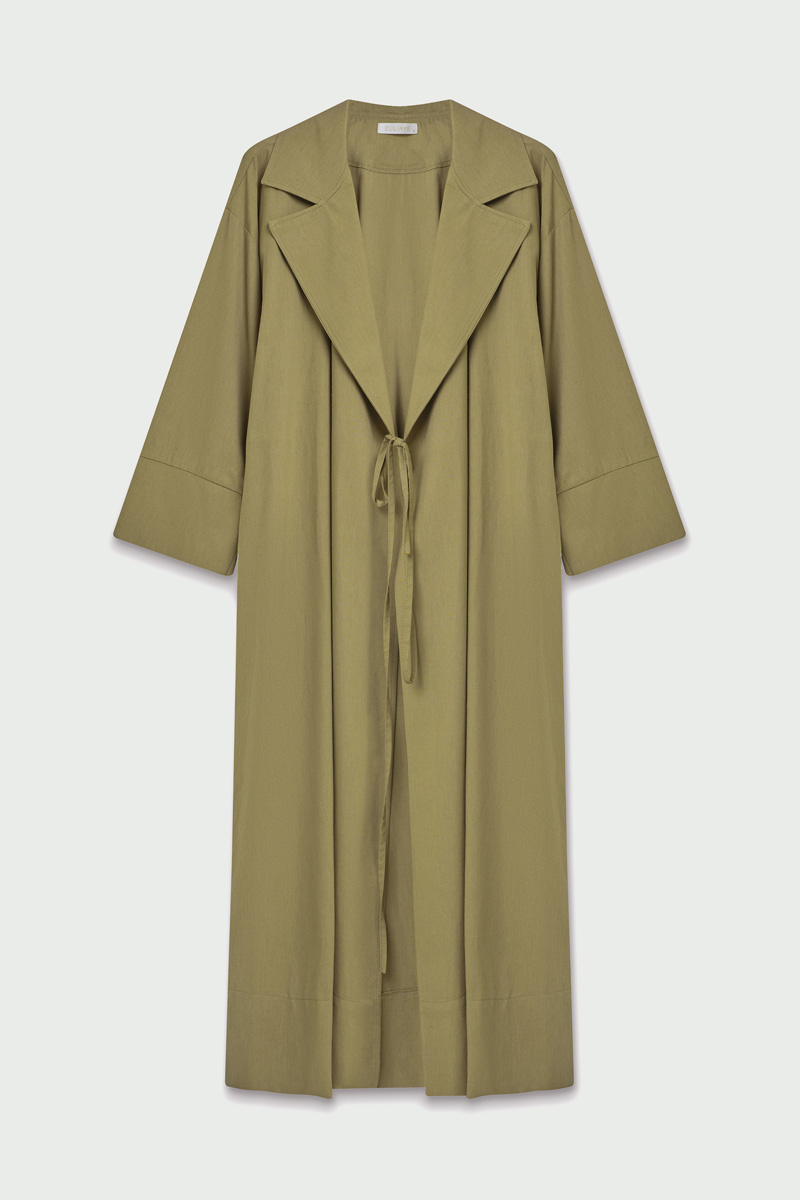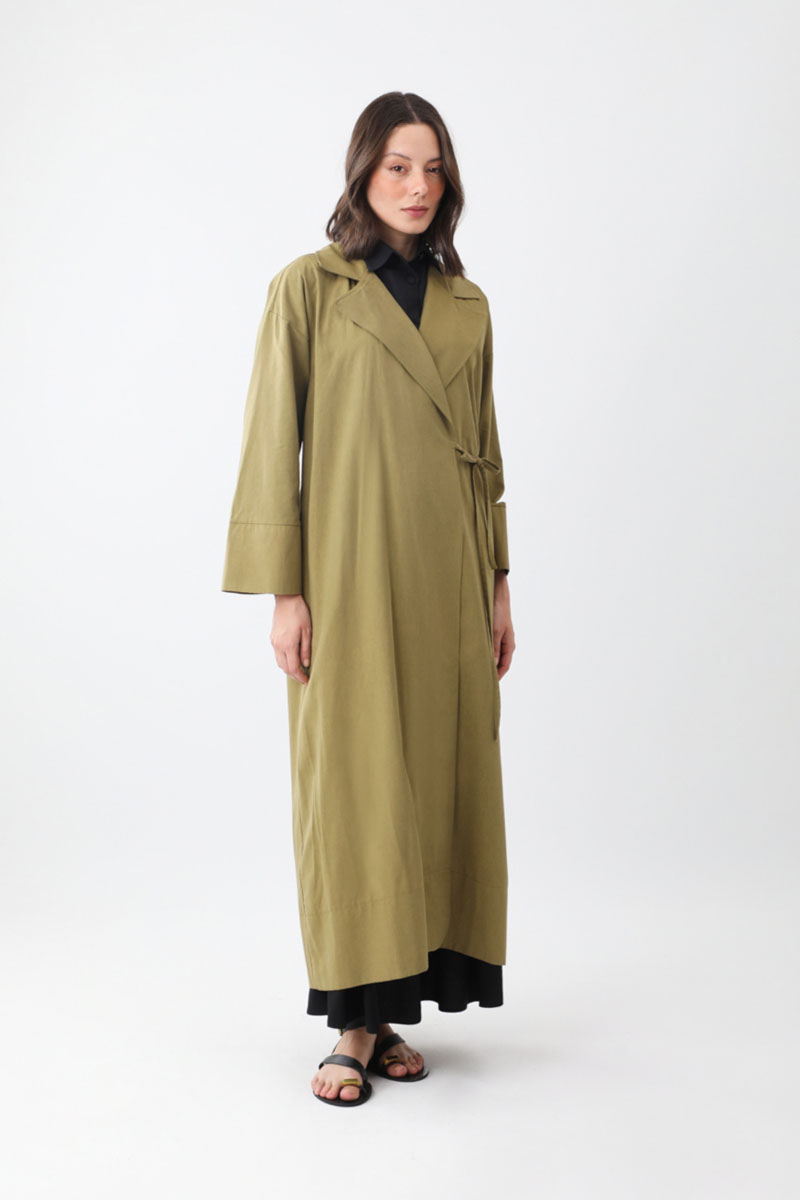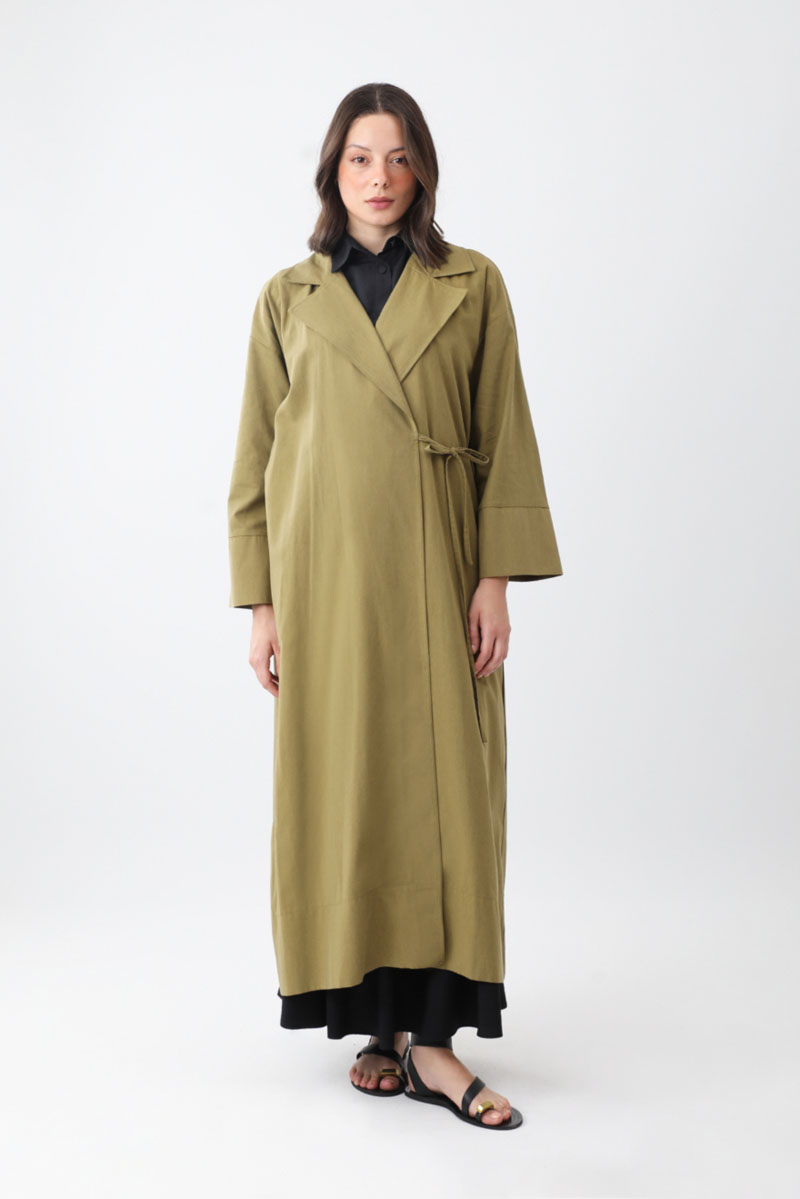 Bağlamalı Keten Trençkot Haki