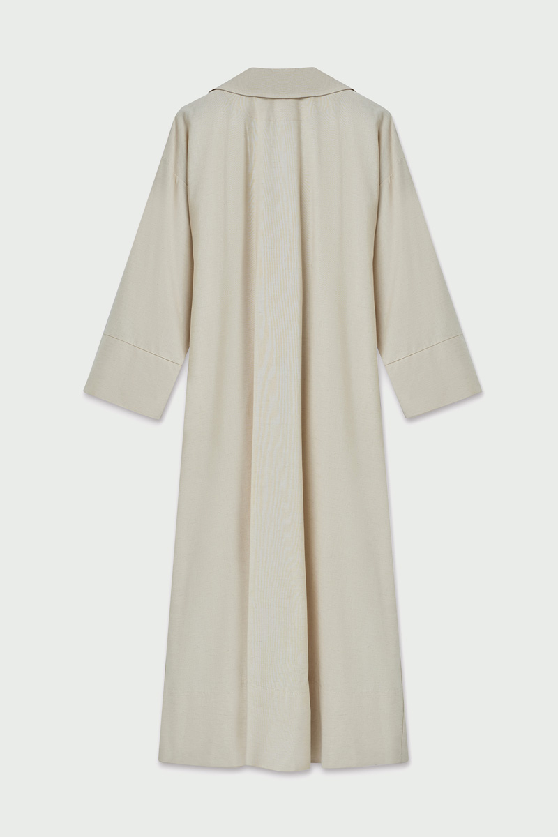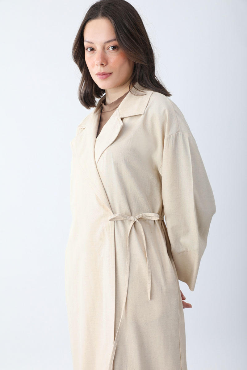 Bağlamalı Keten Trençkot Taş