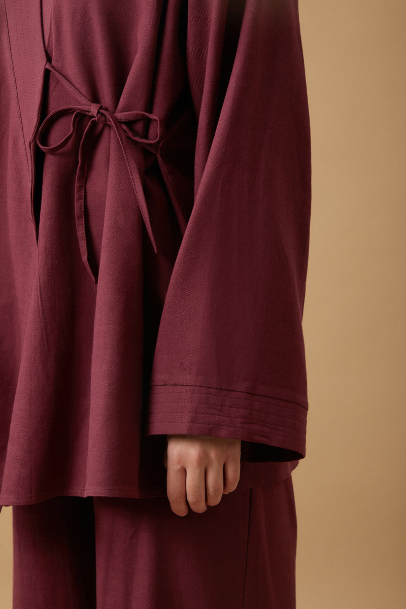 Yandan Bağlamalı Kimono Takım Bordo, Doğallığın ve yalın şıklığın bir araya geldiği bu keten karışımlı takım, sade ama özgün tarzıyla öne çıkmak isteyenler için tasarlandı. Hafif dökümlü yapısı ve nefes alabilen kumaşı sayesinde hem şehir hayatına hem tatil günlerine uyum sağlar.