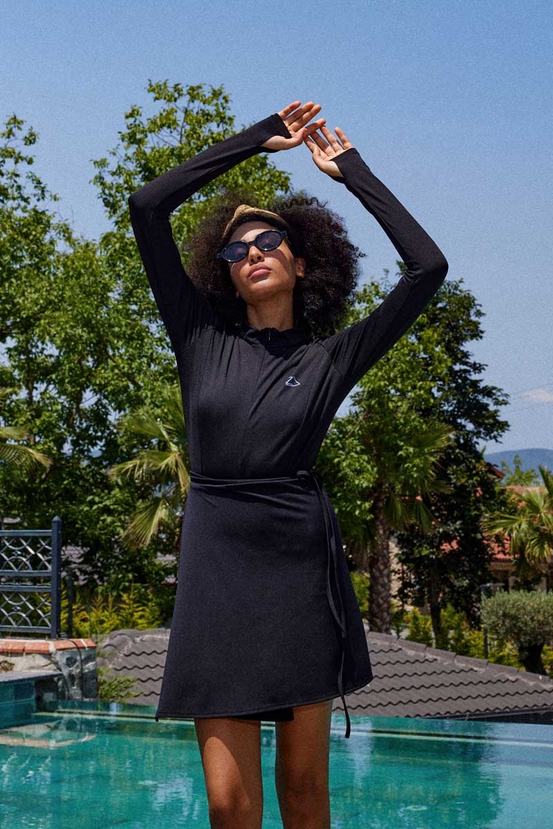Yandan Bağlamalı Mayo Eteği Siyah.Yandan bağlamalıdır, hafif kloştur, esnek kumaştır, tayt ve mayo üzerine tercih edebilirsiniz, deniz ve havuz kullanımına uygundur.
