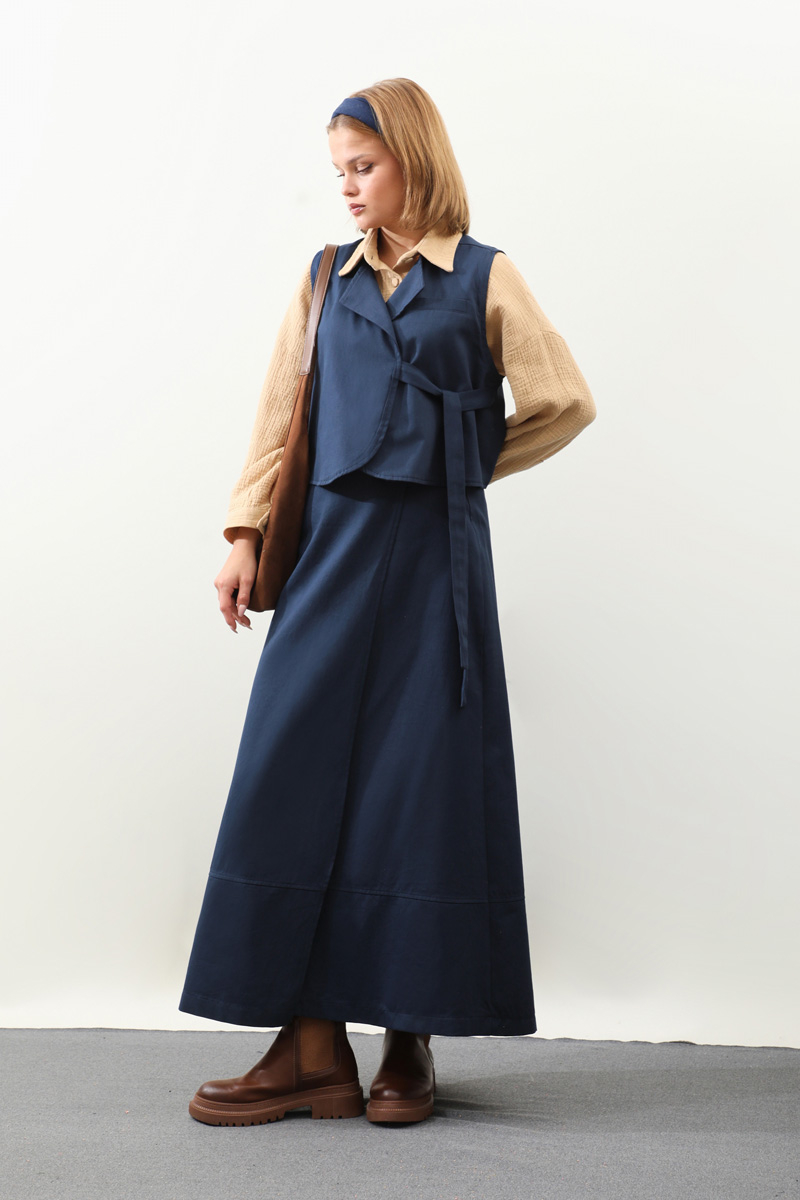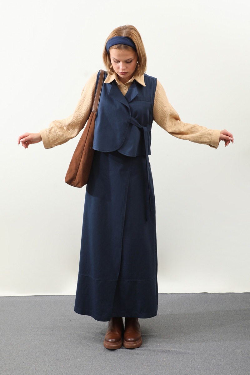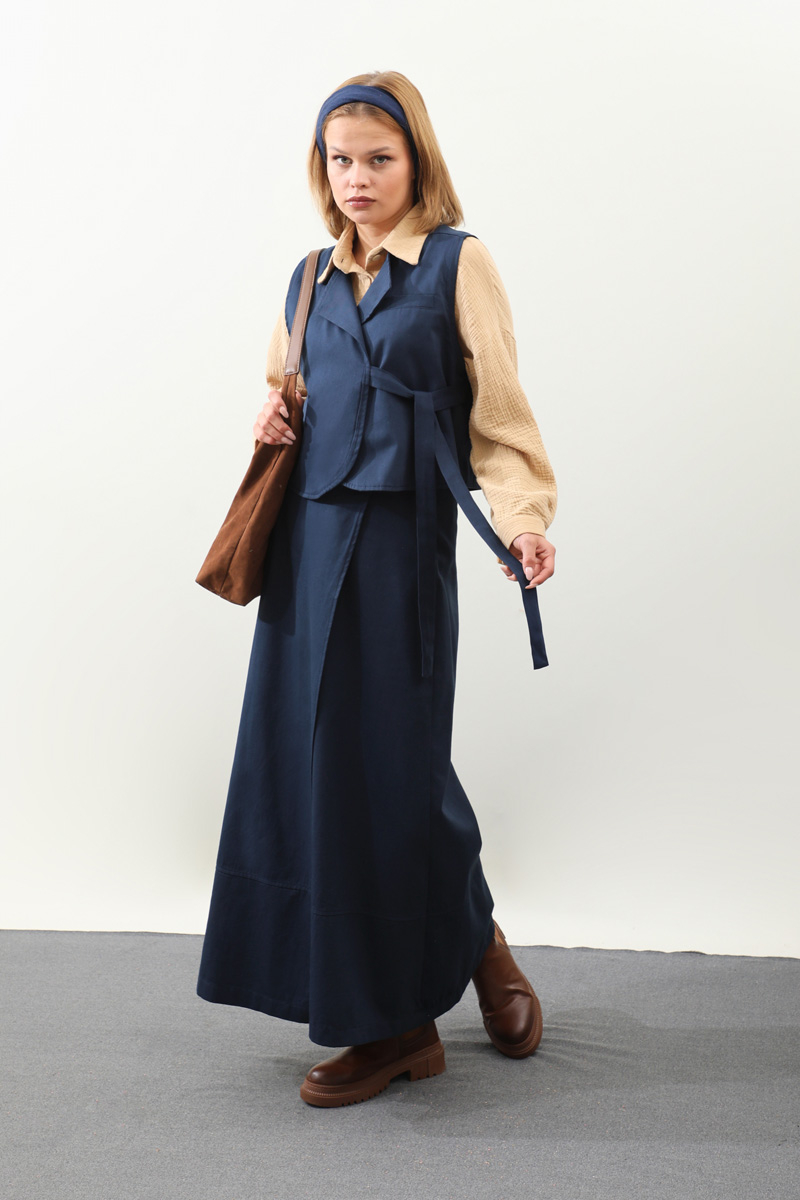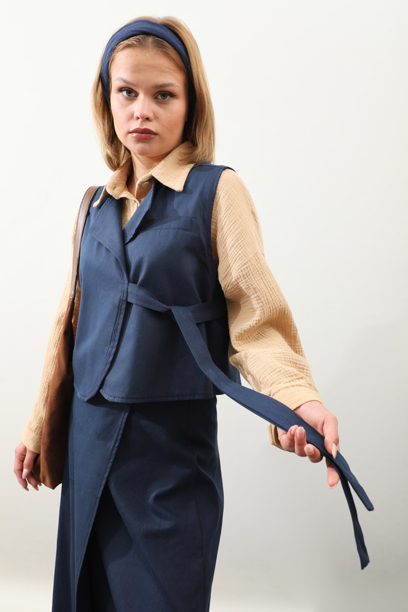 Yandan Bağlamalı Yelek Etek Takım Lacivert