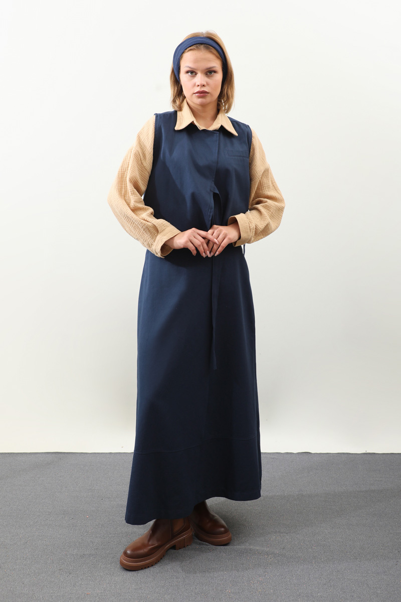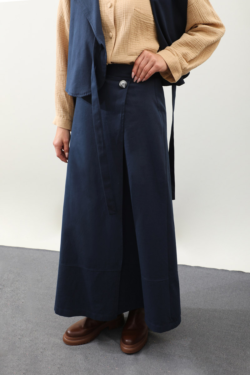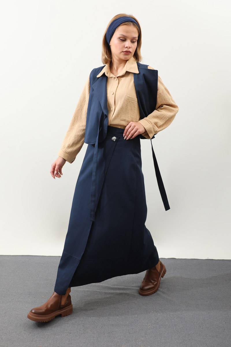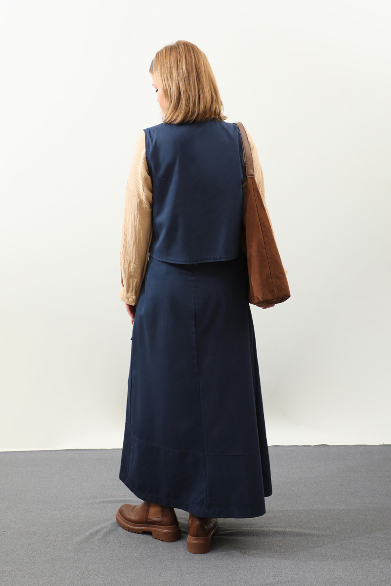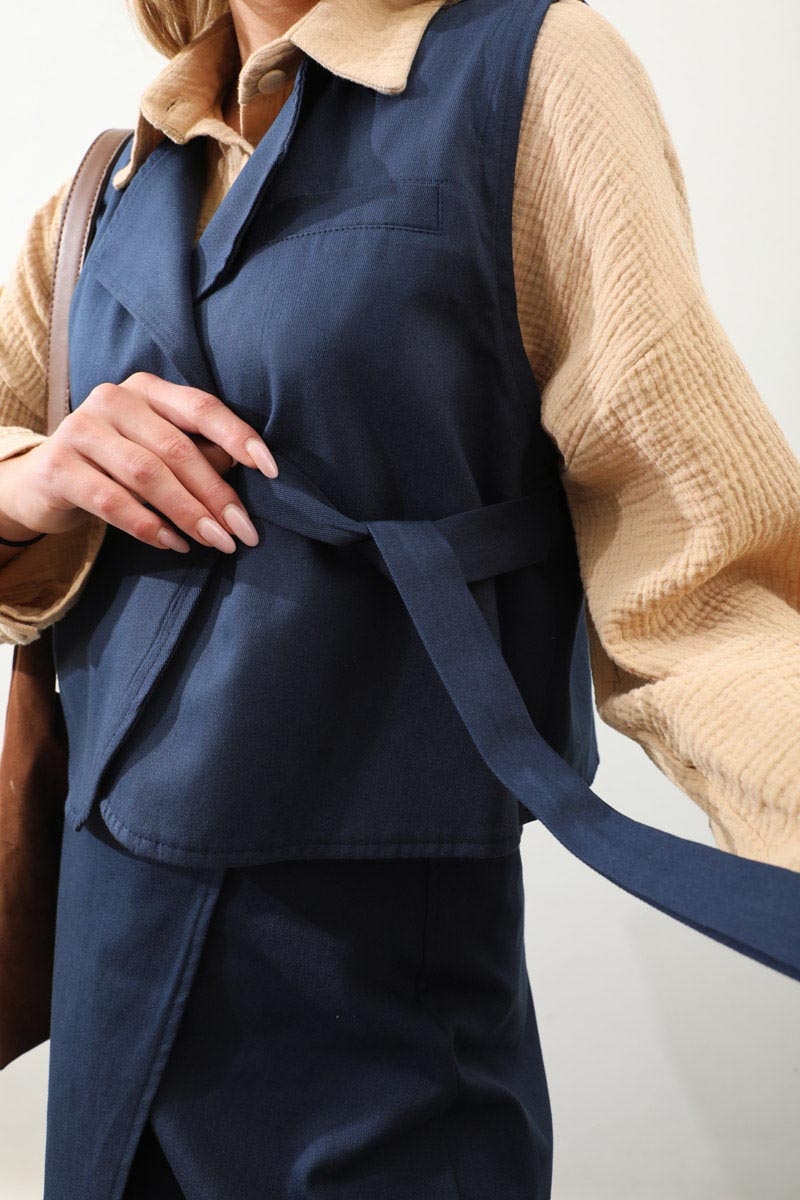 Yandan Bağlamalı Yelek Etek Takım Lacivert