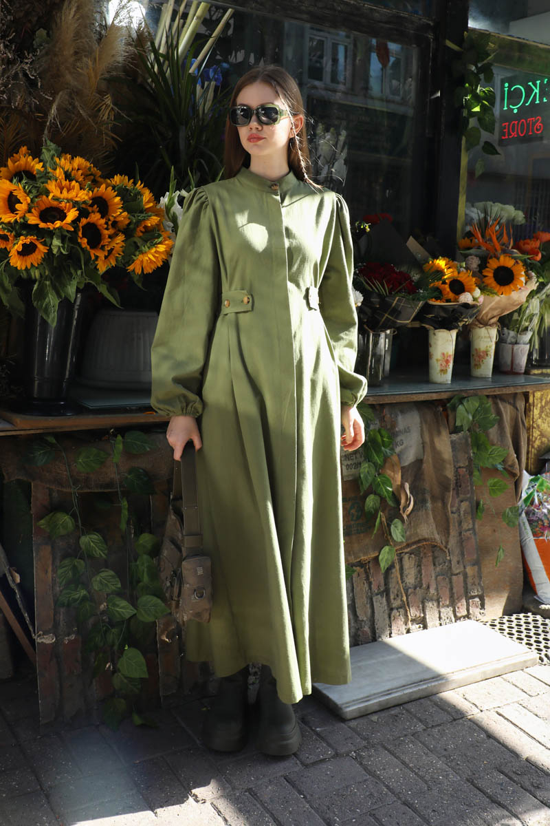 Yandan Kemerli Elbise Koyu Yeşil. Hakim yakadır, Önden gizli düğmelidir. Belden ayarlanabilir kemer detaylıdır. omuzdan büzgülüdür. Bilekten lastiklidir. Yandan ceplidir, astarsızdır. Günlük kullanım ve özel günlerinizde tercih edebilirsiniz.