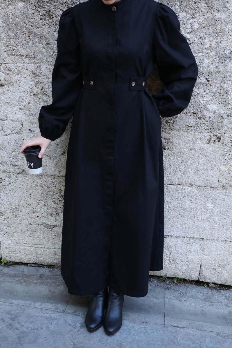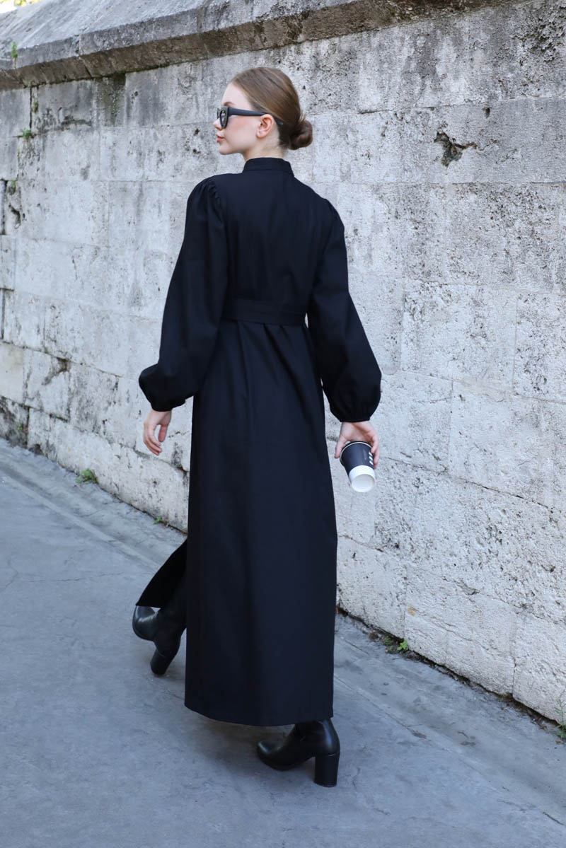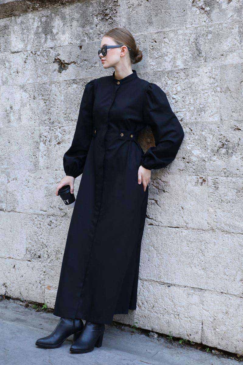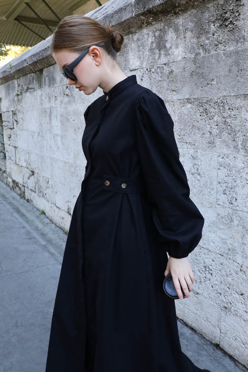 Yandan Kemerli Elbise Siyah. Hakim yakadır, Önden gizli düğmelidir. Belden ayarlanabilir kemer detaylıdır. omuzdan büzgülüdür. Bilekten lastiklidir. Yandan ceplidir, astarsızdır. Günlük kullanım ve özel günlerinizde tercih edebilirsiniz.