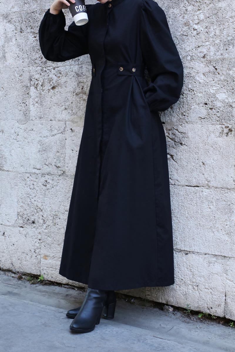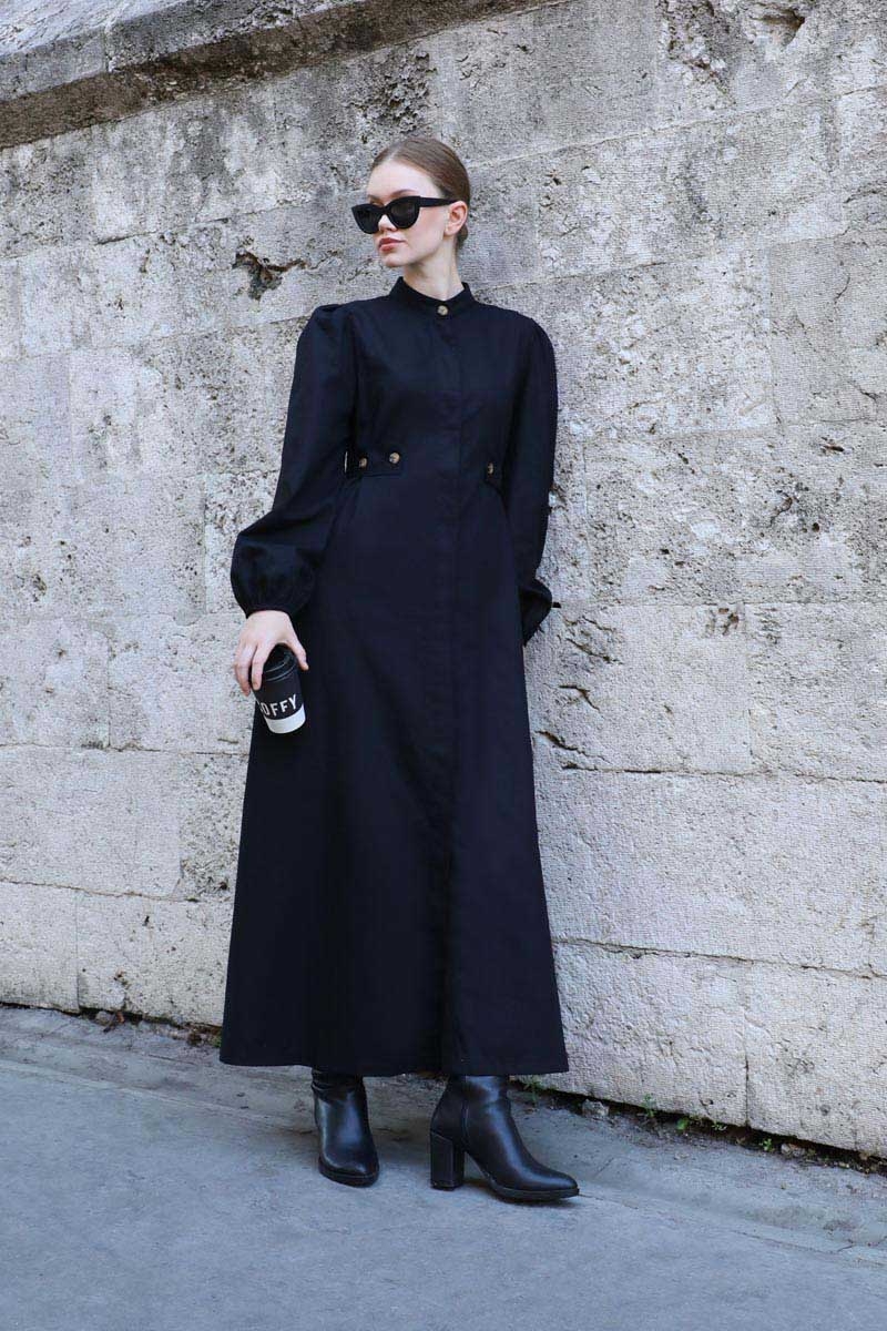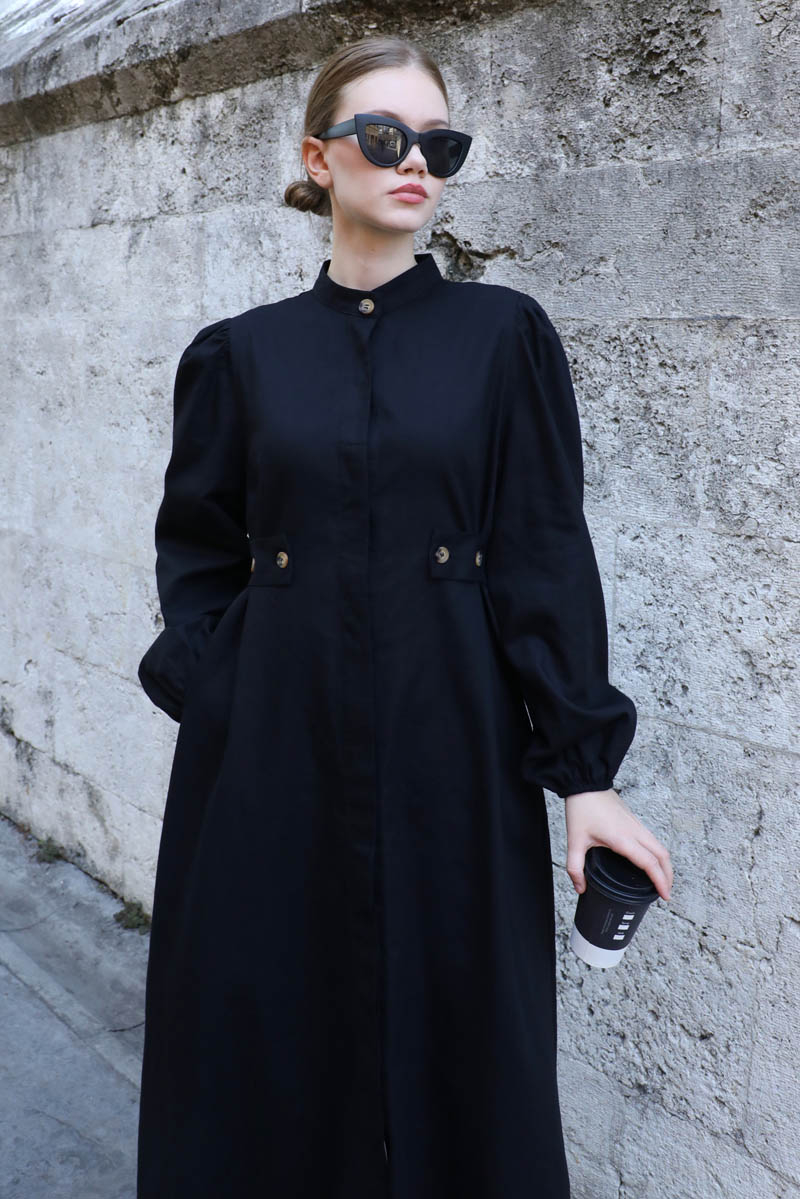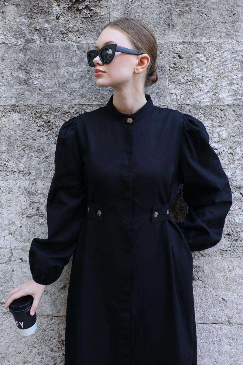 Yandan Kemerli Elbise Siyah. Hakim yakadır, Önden gizli düğmelidir. Belden ayarlanabilir kemer detaylıdır. omuzdan büzgülüdür. Bilekten lastiklidir. Yandan ceplidir, astarsızdır. Günlük kullanım ve özel günlerinizde tercih edebilirsiniz.