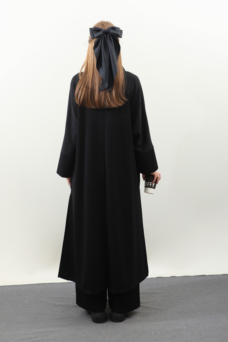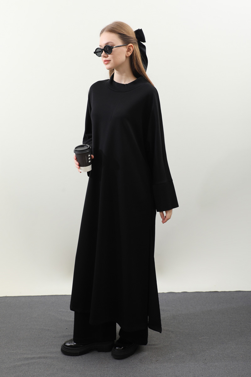 Yandan Yırtmaçlı Uzun Takım Siyah