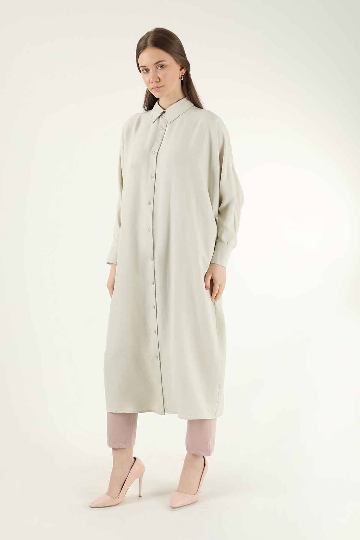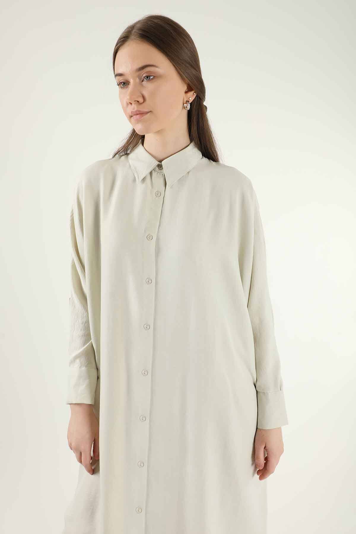 Düğmeli Uzun Gömlek Krem
