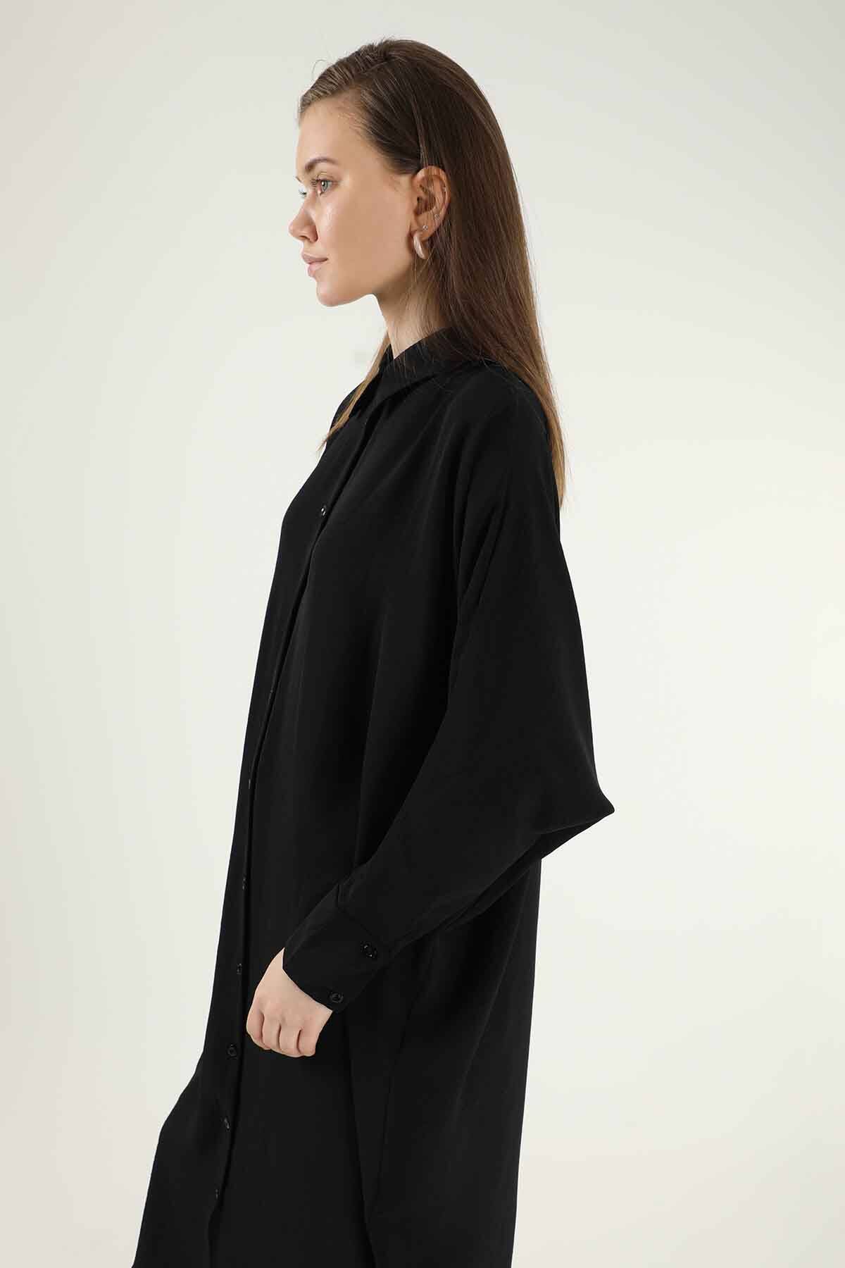 Düğmeli Uzun Gömlek Siyah