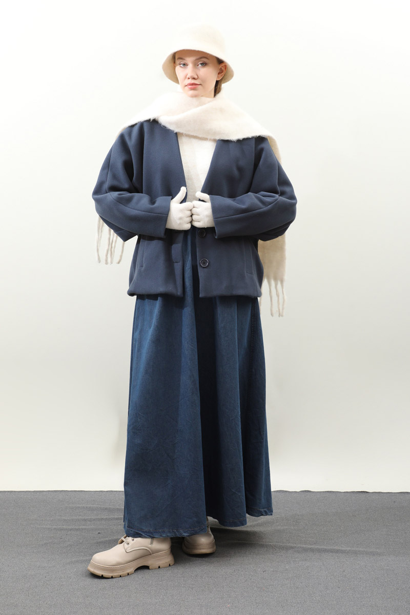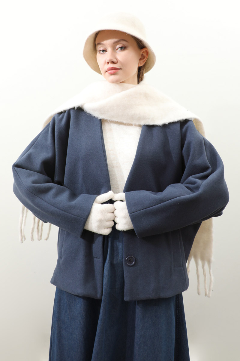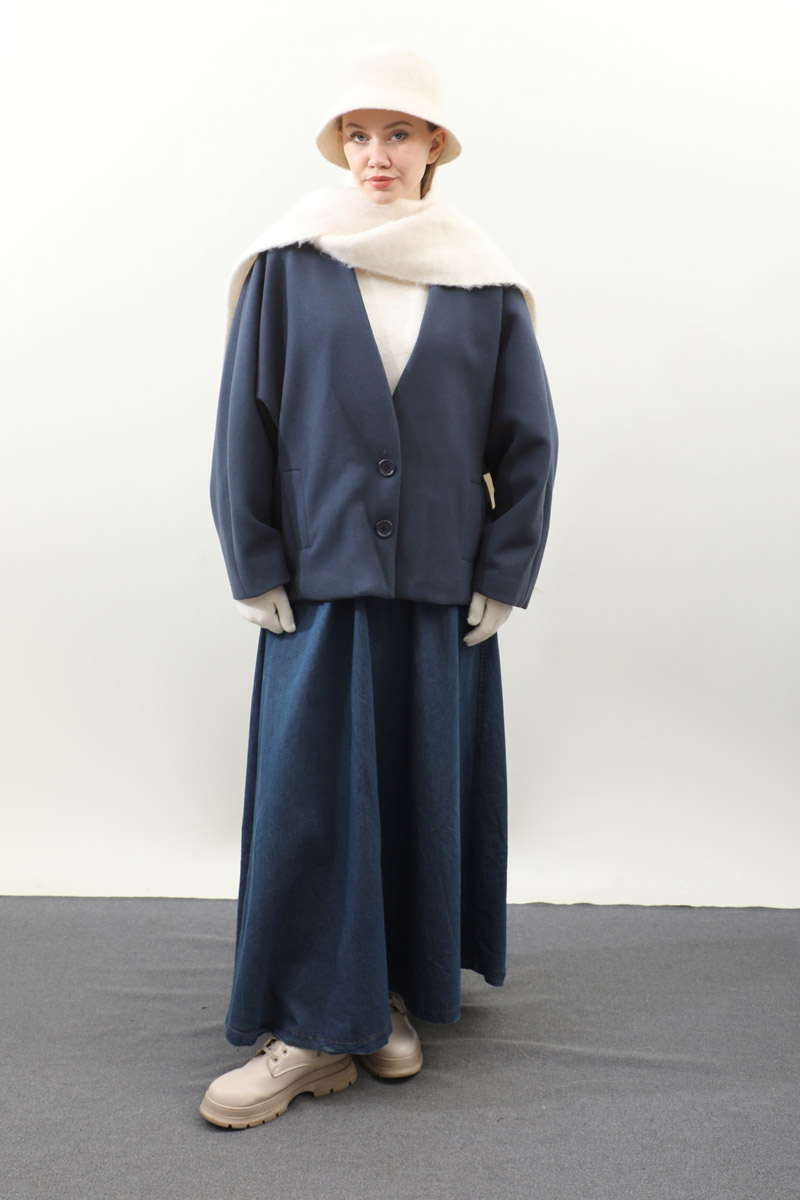 Yarasa Kısa Kol Ceket İndigo. V yakadır, yarasa kolludur, önden düğmelidir, ceplidir, astarlıdır. Günlük kullanım ve özel günlerinizde tercih edebilirsiniz.