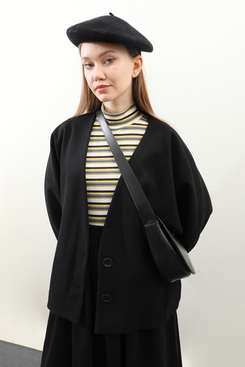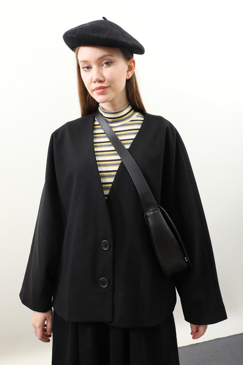 Yarasa Kısa Kol Ceket Siyah. V yakadır, yarasa kolludur, önden düğmelidir, ceplidir, astarlıdır. Günlük kullanım ve özel günlerinizde tercih edebilirsiniz.