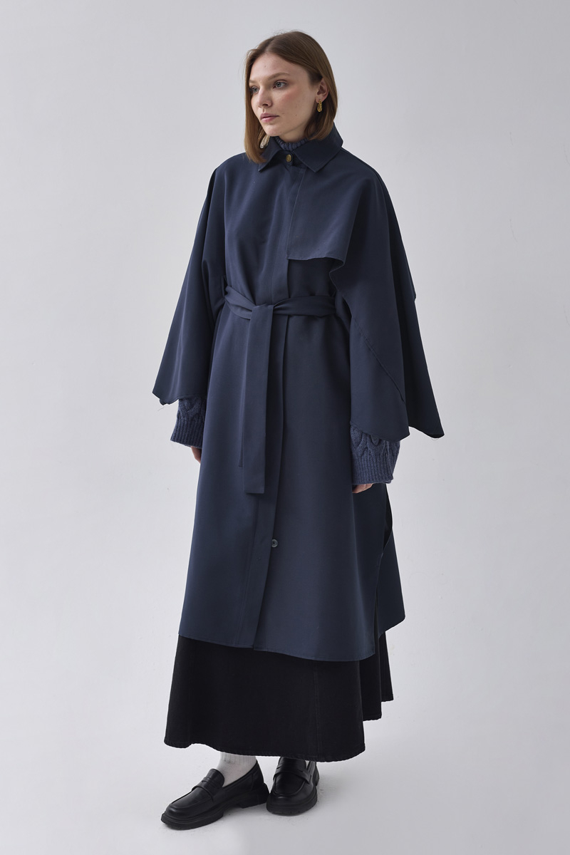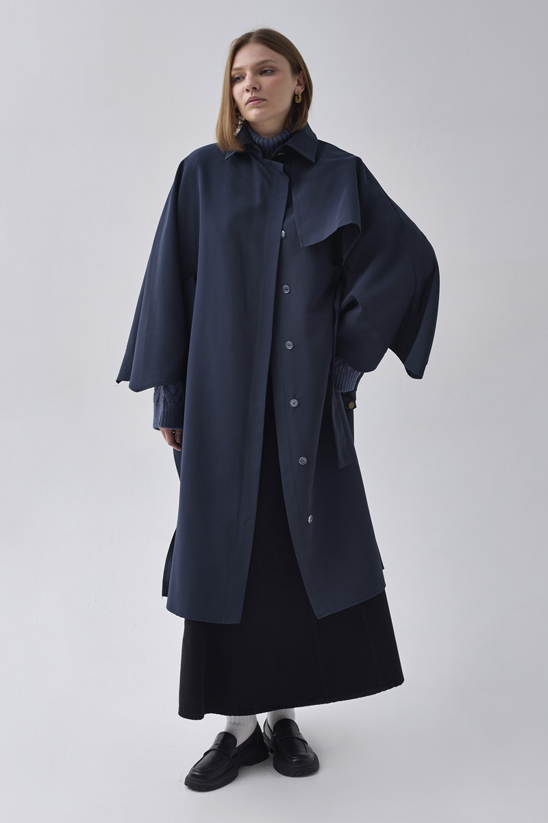 Yarasa Kol Trençkot Kahverengi, modern ve özgün tasarımıyla dikkat çeken zamansız bir dış giyim parçasıdır. Yarasa kol kesimi ve bol formu sayesinde rahat bir kullanım sunarken, kuşak detayı ile bel vurgusu yapılarak şık bir siluet oluşturur. Hem günlük kombinlerde hem de özel davetlerde zarif bir tamamlayıcı olarak kullanılabilir.