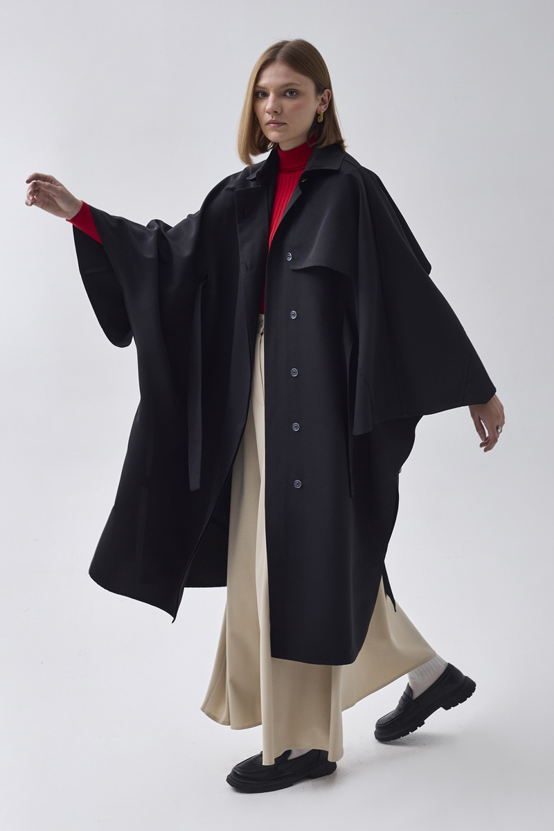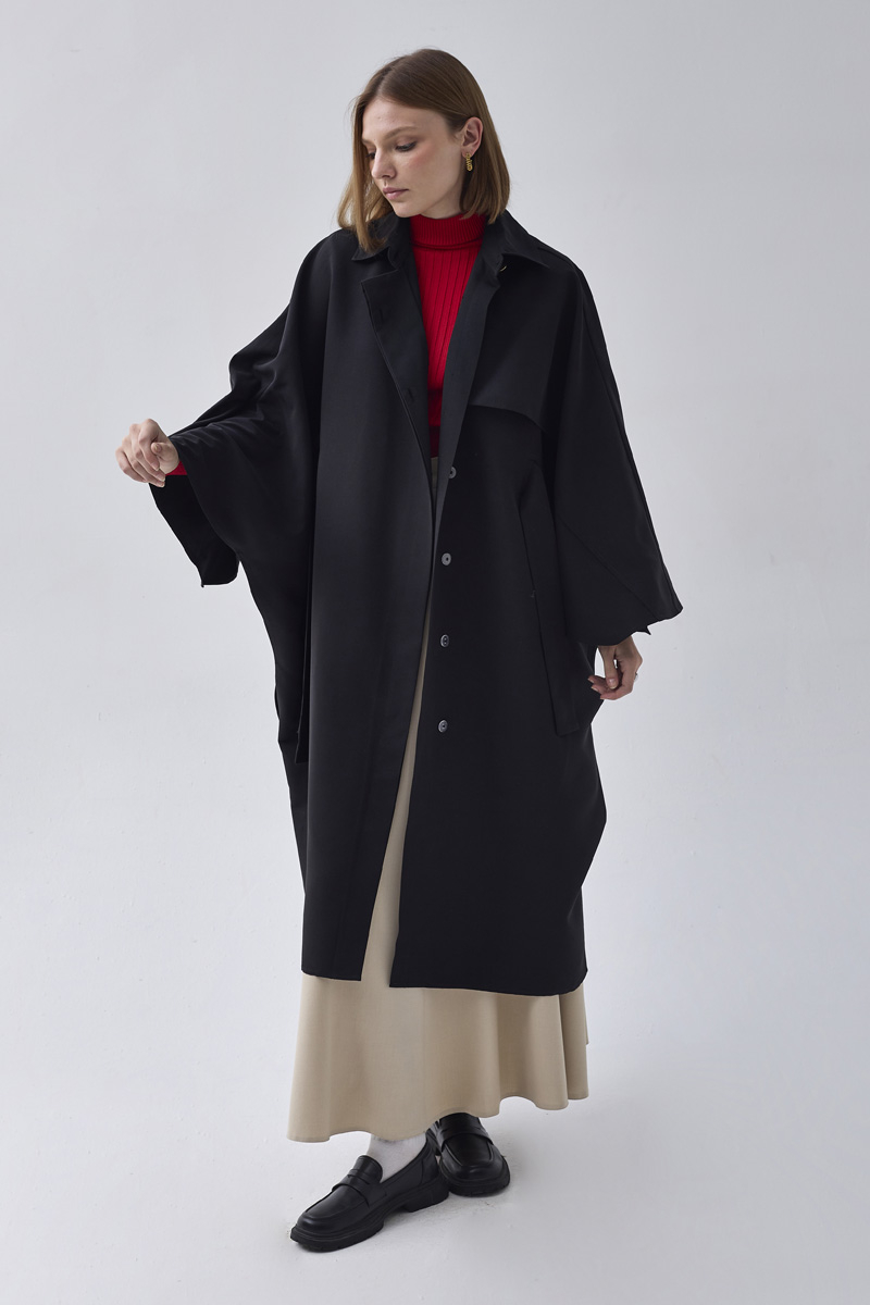 Yarasa Kol Trençkot Siyah