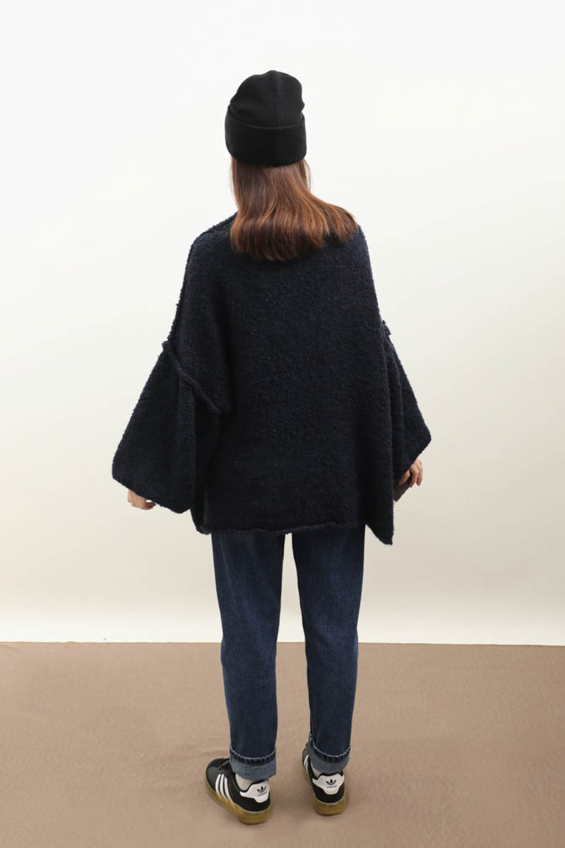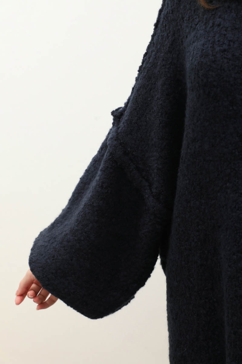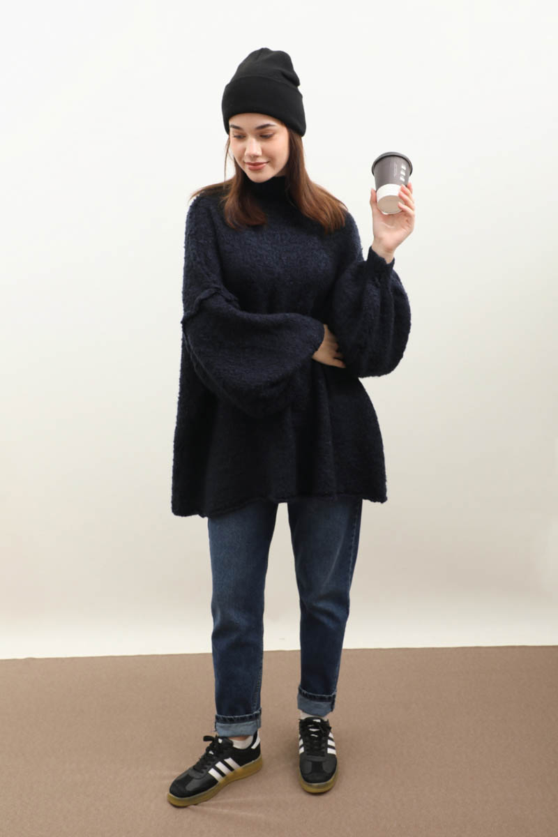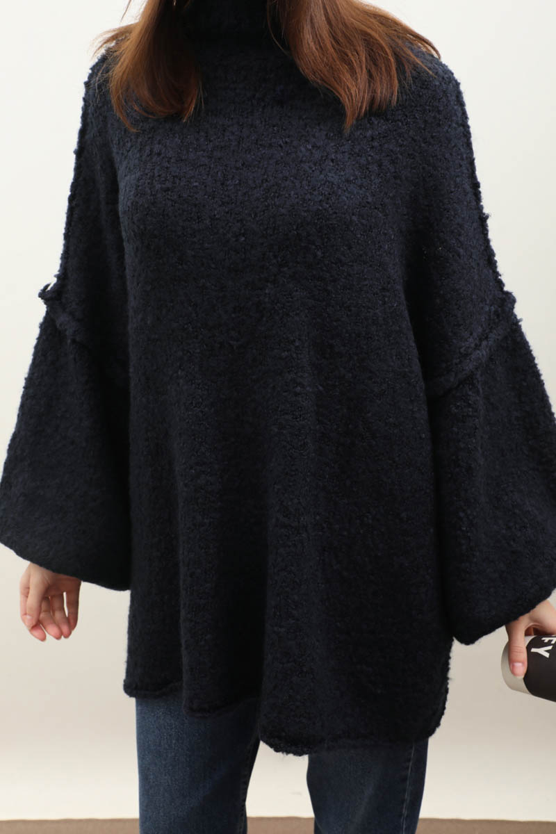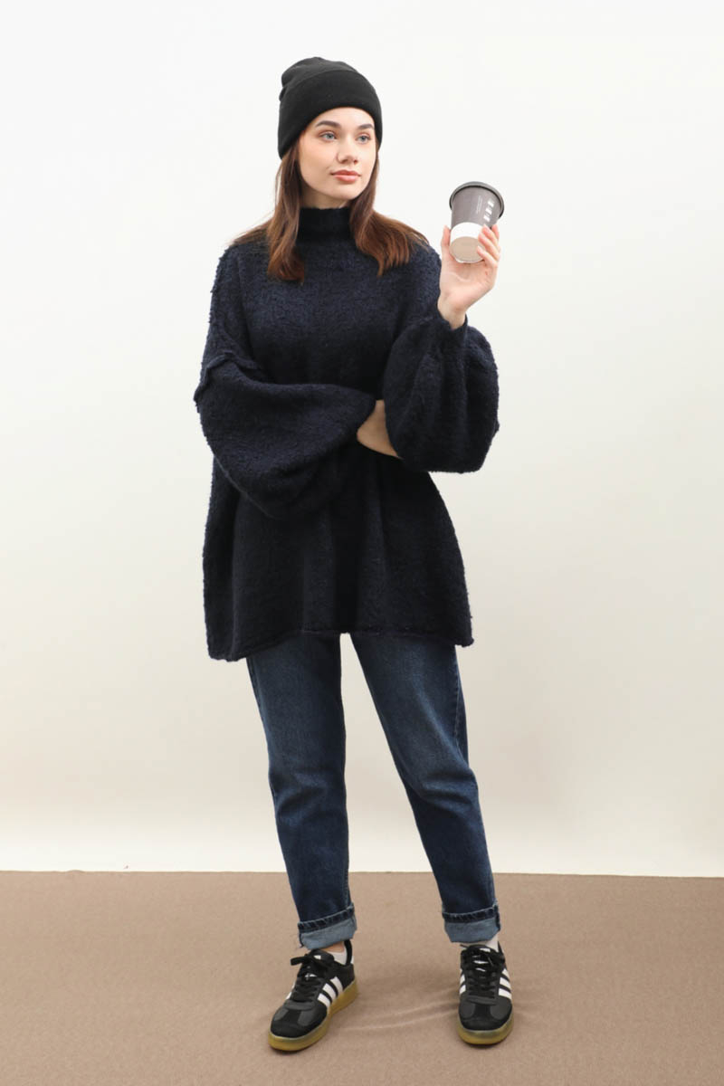 Yarım Balıkçı Kazak Lacivert. Balıkçı yakadır, düşük omuzludur, manşetli ribanalı dikiş detaylıdır, oversize kalıptır. Günlük kullanım ve özel günlerinizde tercih edebilirsiniz.