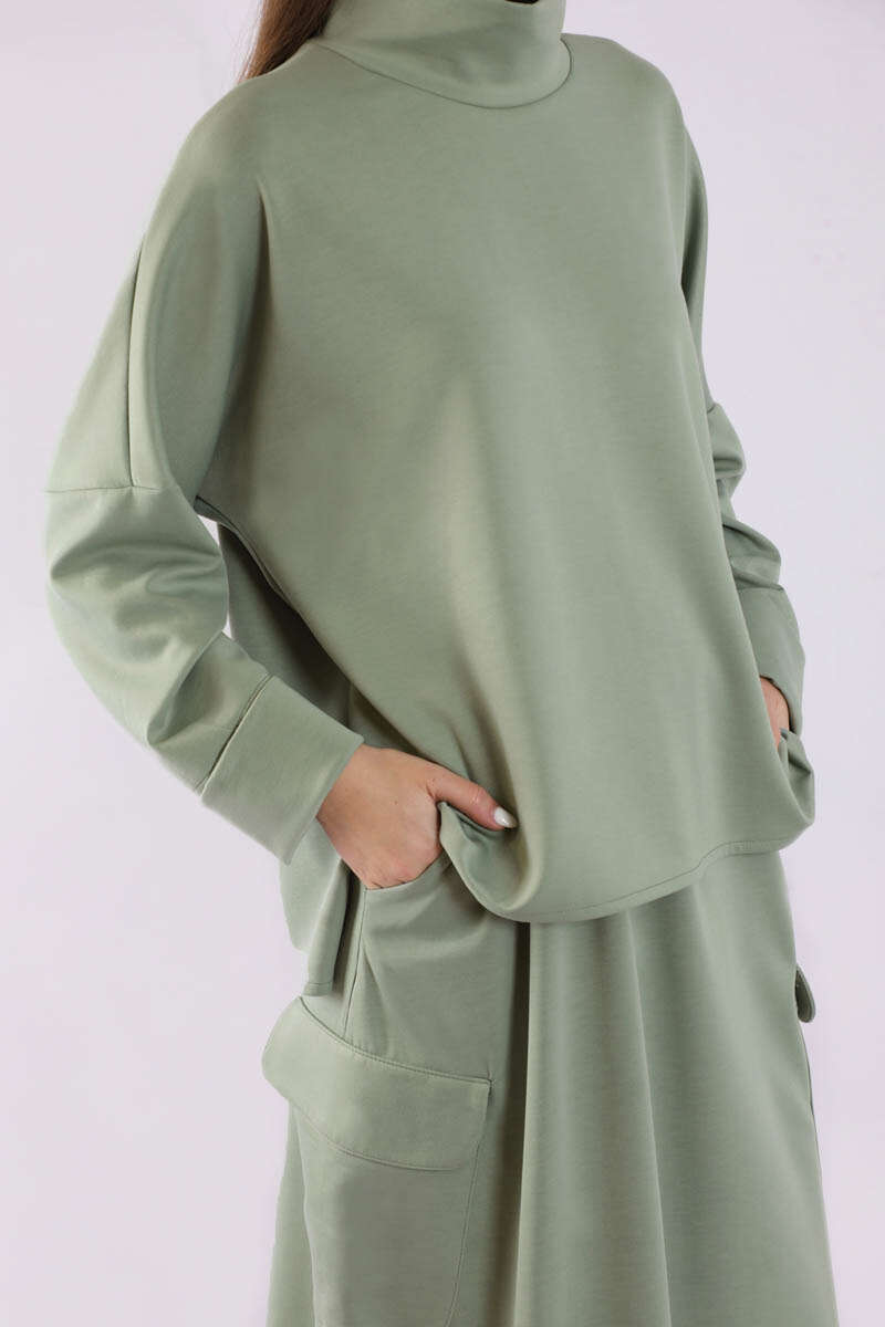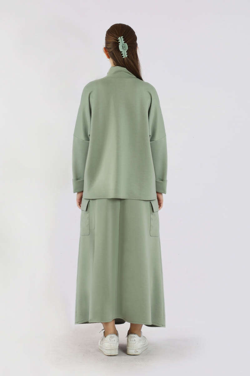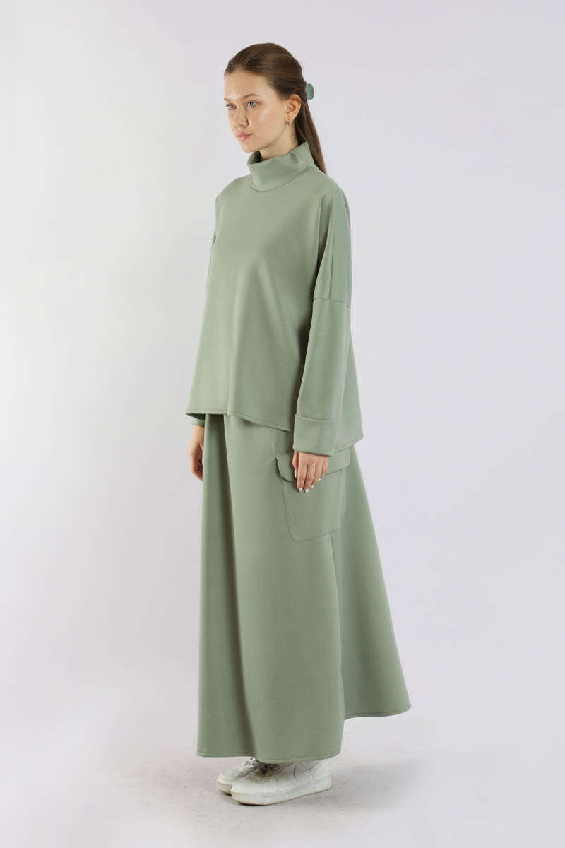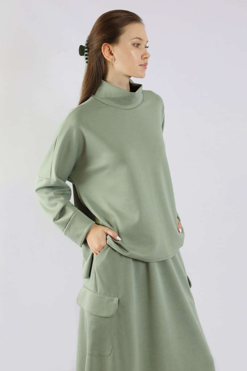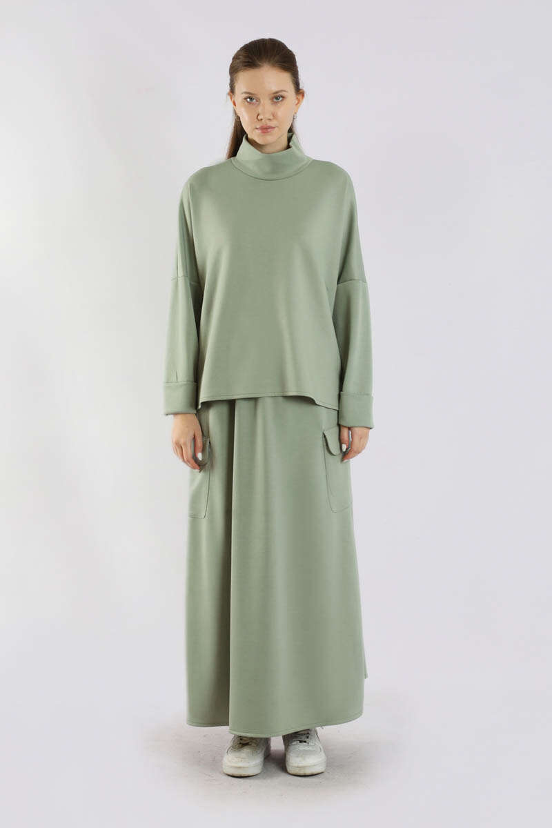 Yarım Balıkçı Yaka Cepli Spor Takım Mint. Etek beli lastiklidir. Etekte önden ve yandan aktif ceplidir. Üst düşük omuzludur. Hem spor hem de günlük aktiviteler için ideal olan bu takım, rahatlığı, şıklığı ve konforu aynı anda sunarak stilin mükemmel bir kombinasyonunu sunuyor.