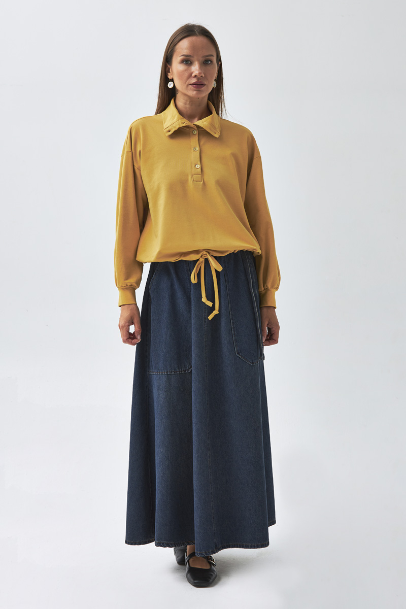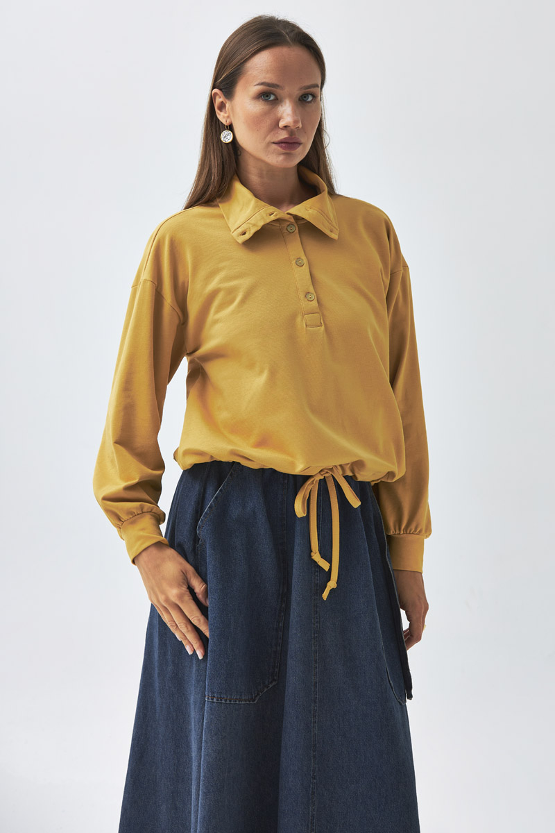 Yarım Düğmeli Sweatshirt Hardal