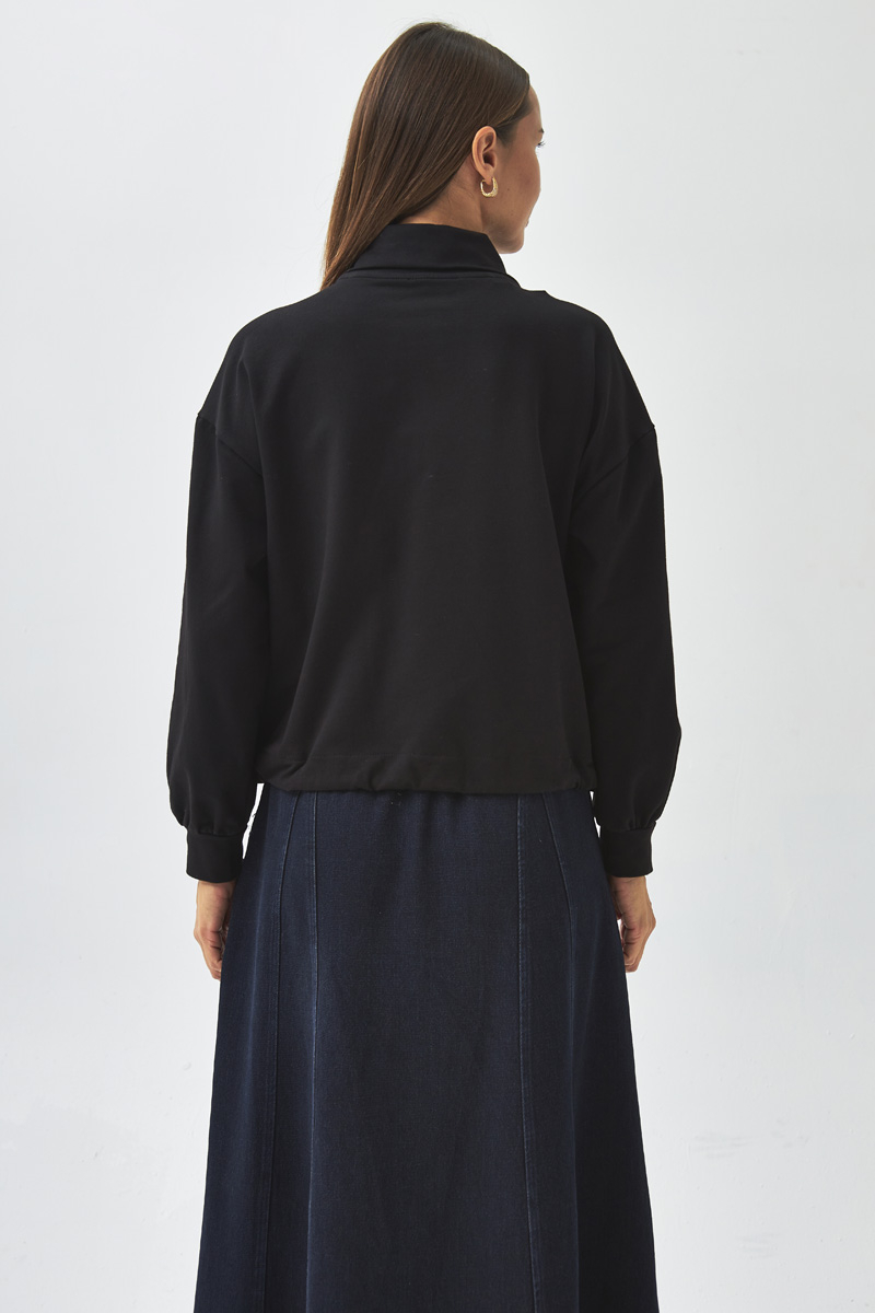 Yarım Düğmeli Sweatshirt Siyah