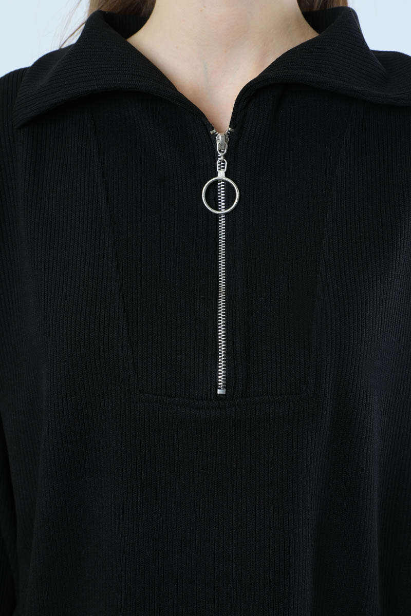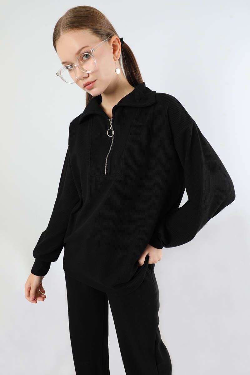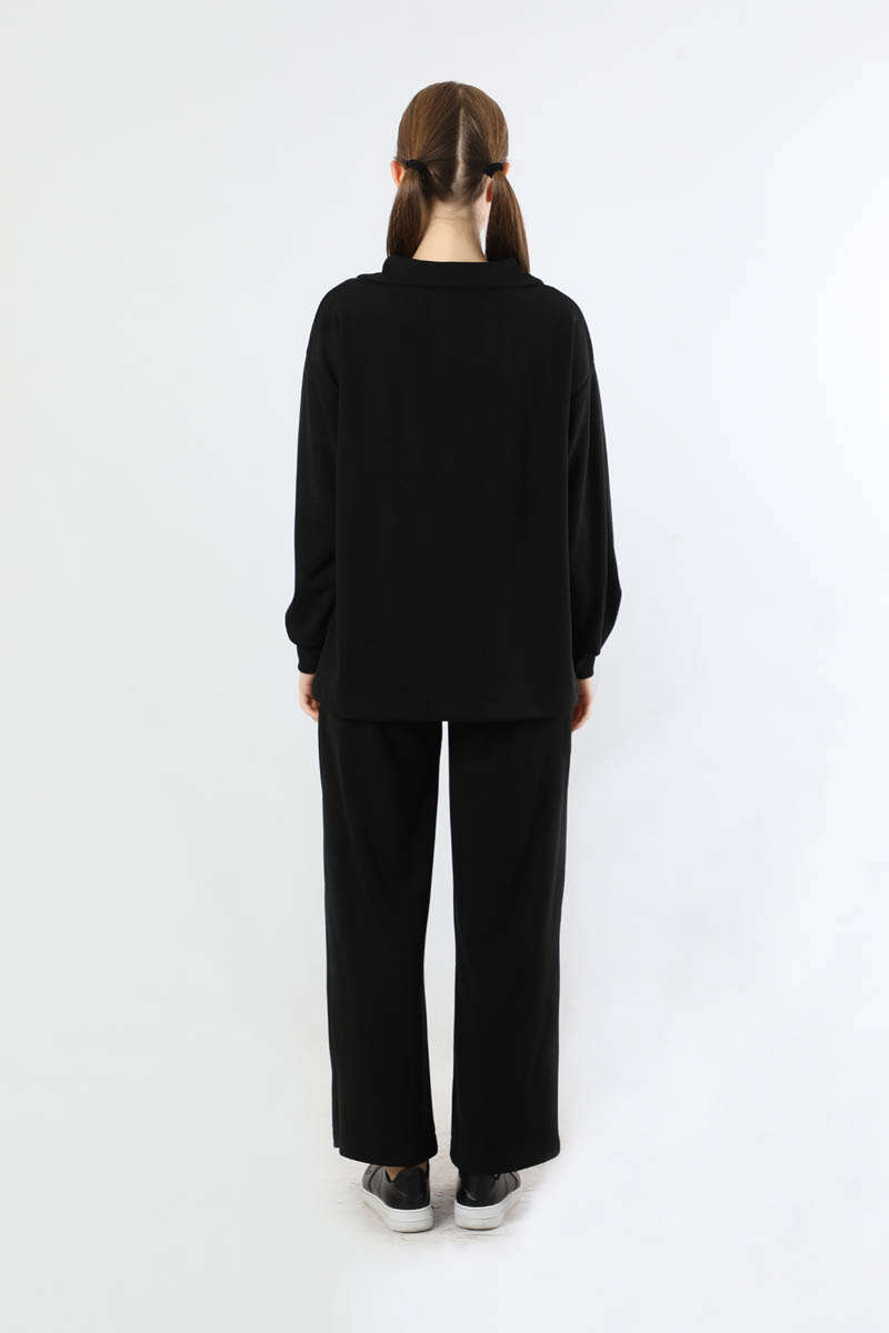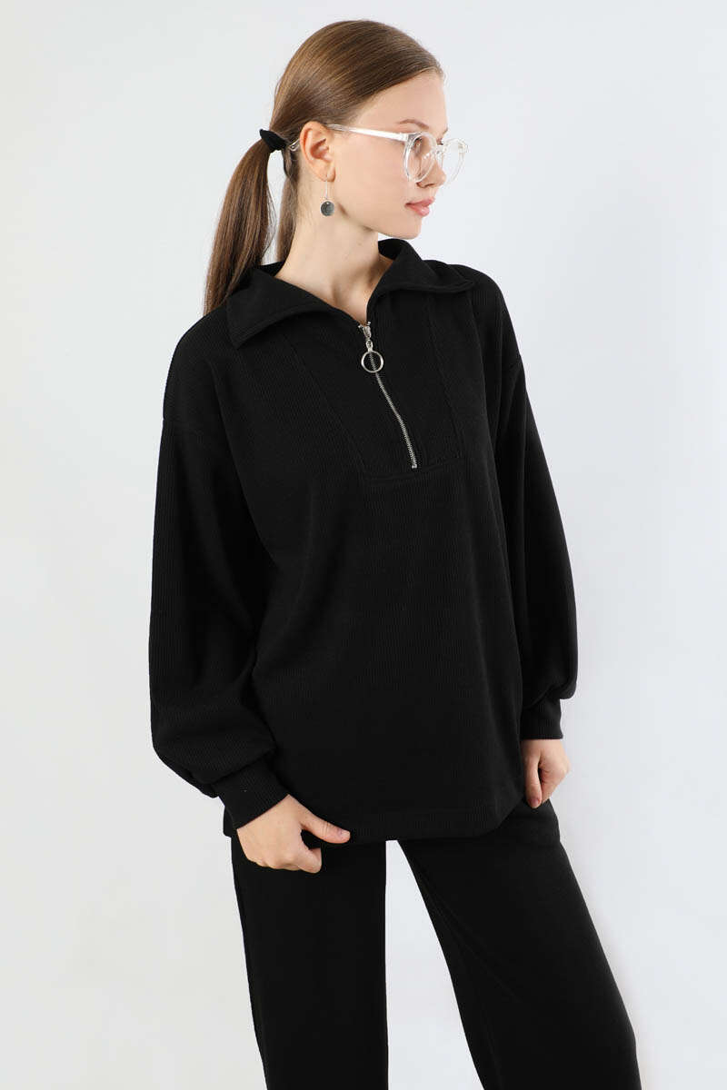 Yarım Fermuarlı Triko Takım Siyah