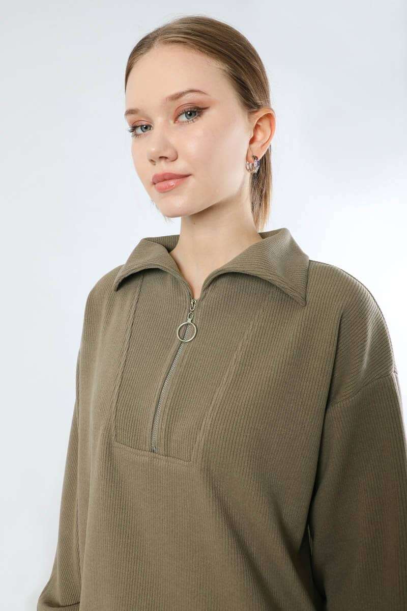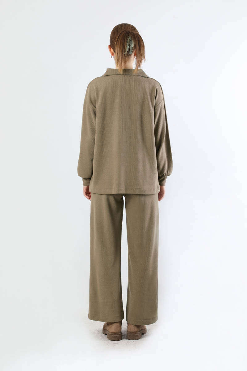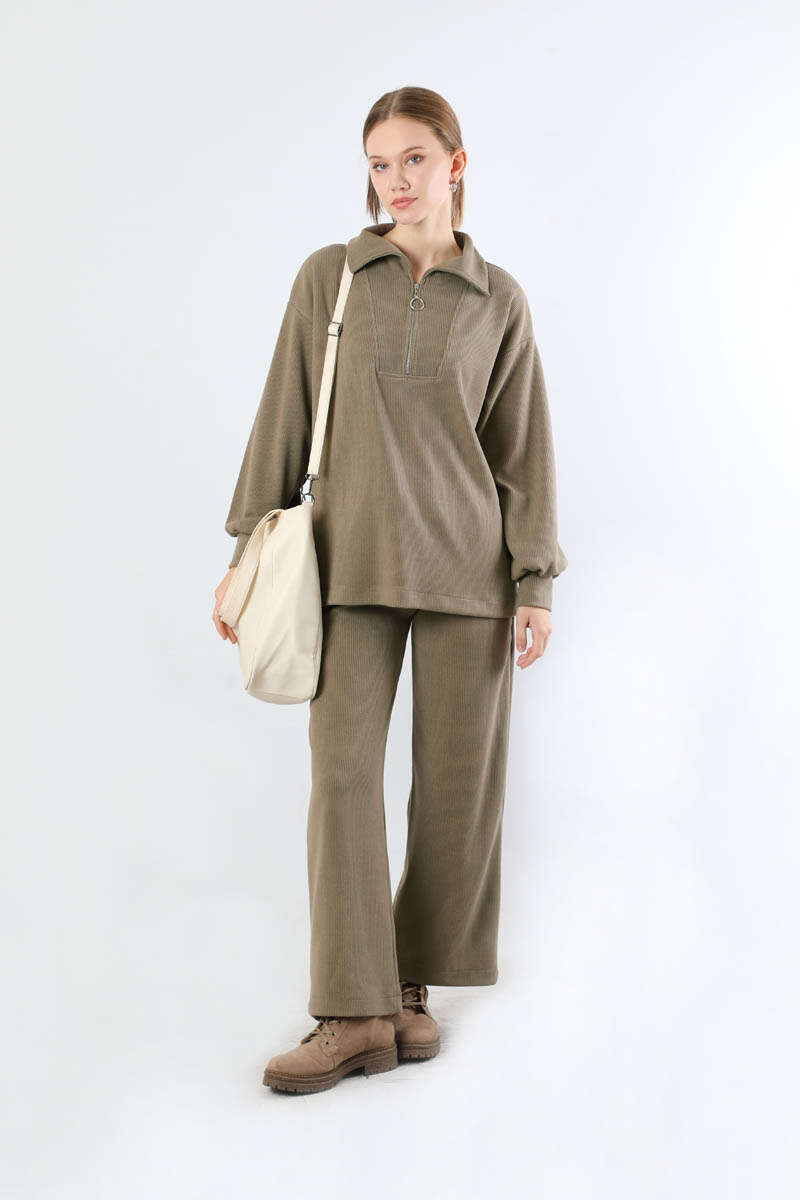 Yarım Fermuarlı Triko Takım Toprak