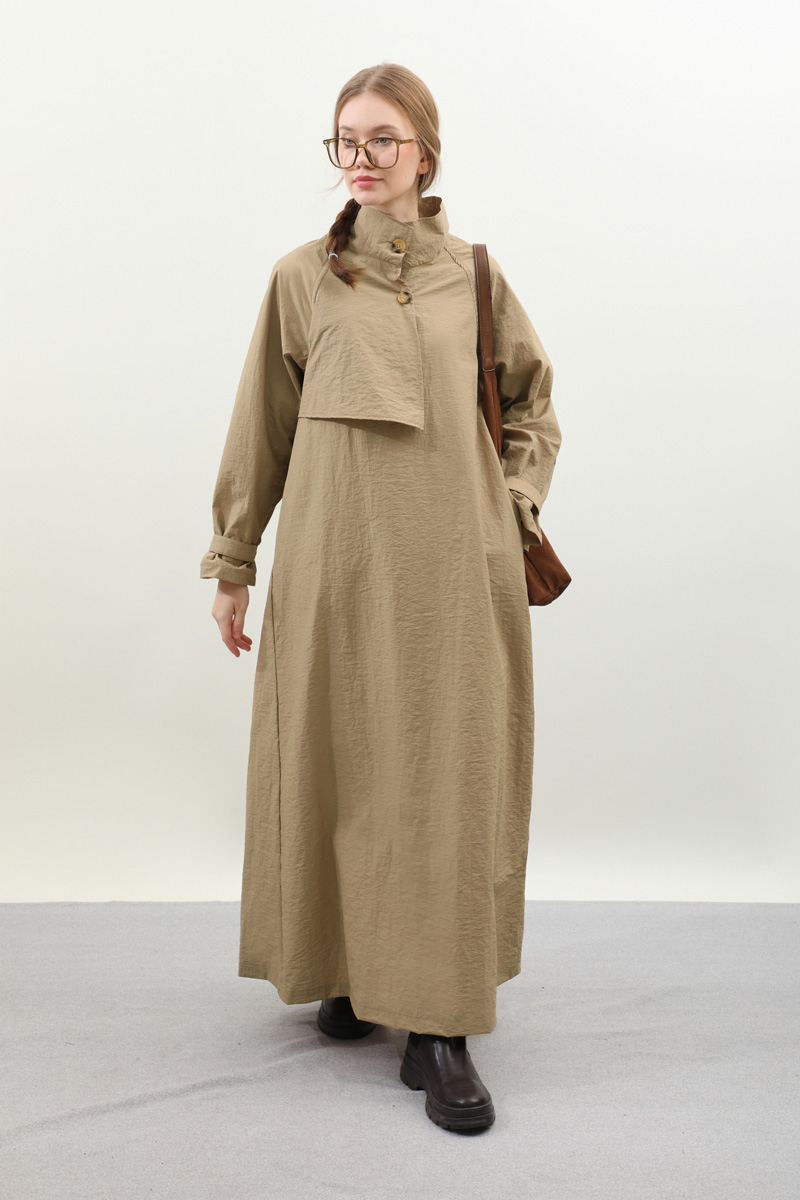 Yarım Rüzgarlıklı Paraşüt Elbise Camel
