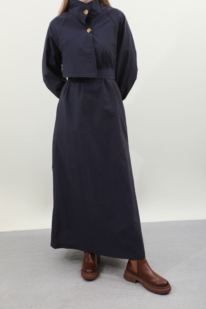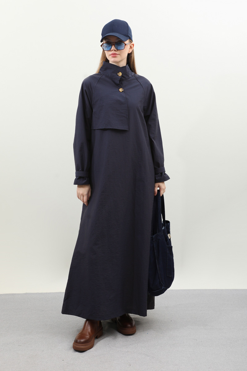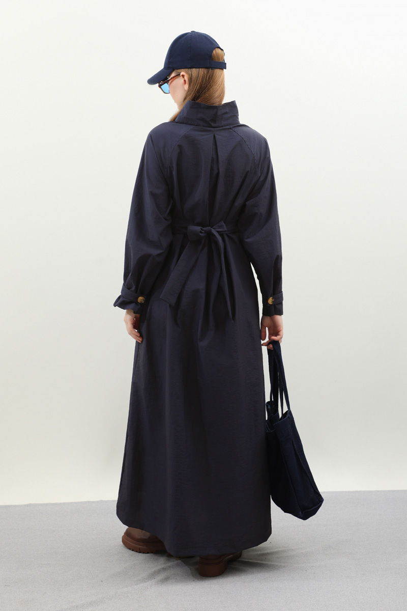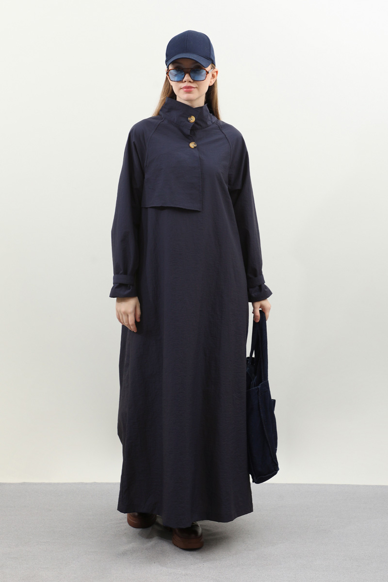 YYarım Rüzgarlıklı Paraşüt Elbise Lacivert. Balıkçı yakadır, önden düğmelidir, reglan kolludur, hareketli rüzgarlık detaylıdır, manşetleri ayarlanabilir kemerlidir, astarlıdır, yandan ceplidir, kuşaklıdır, Günlük kullanım ve özel günlerinizde tercih edebilirsiniz.