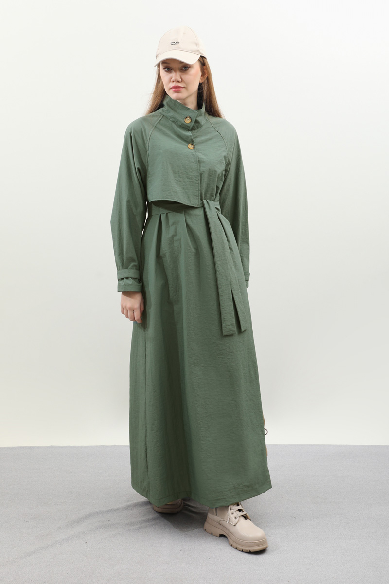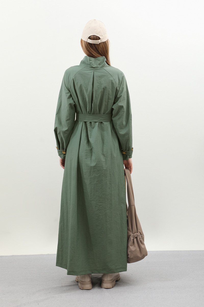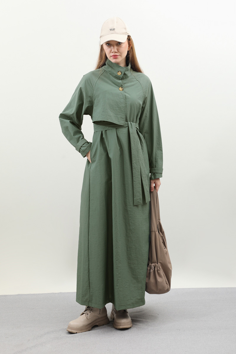Yarım Rüzgarlıklı Paraşüt Elbise Zümrüt. Balıkçı yakadır, önden düğmelidir, reglan kolludur, hareketli rüzgarlık detaylıdır, manşetleri ayarlanabilir kemerlidir, astarlıdır, yandan ceplidir, kuşaklıdır, Günlük kullanım ve özel günlerinizde tercih edebilirsiniz.