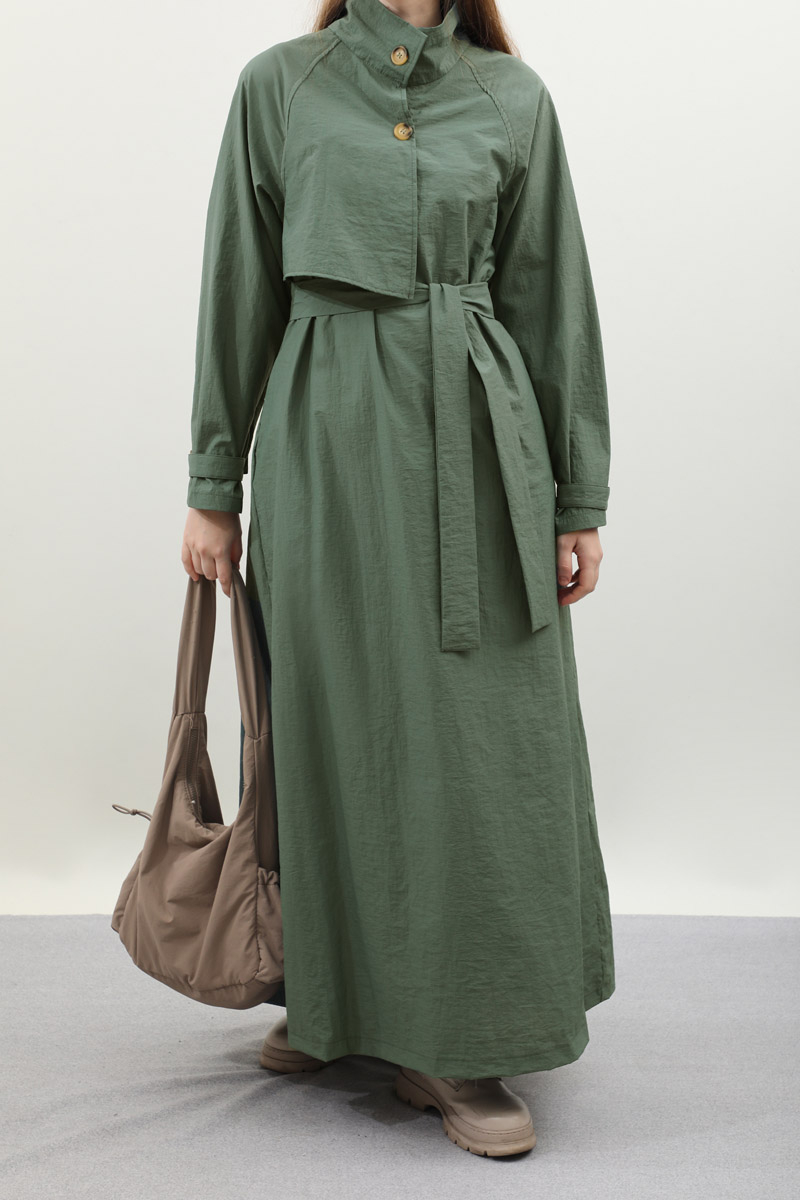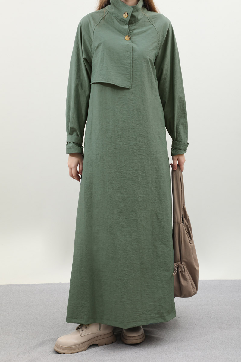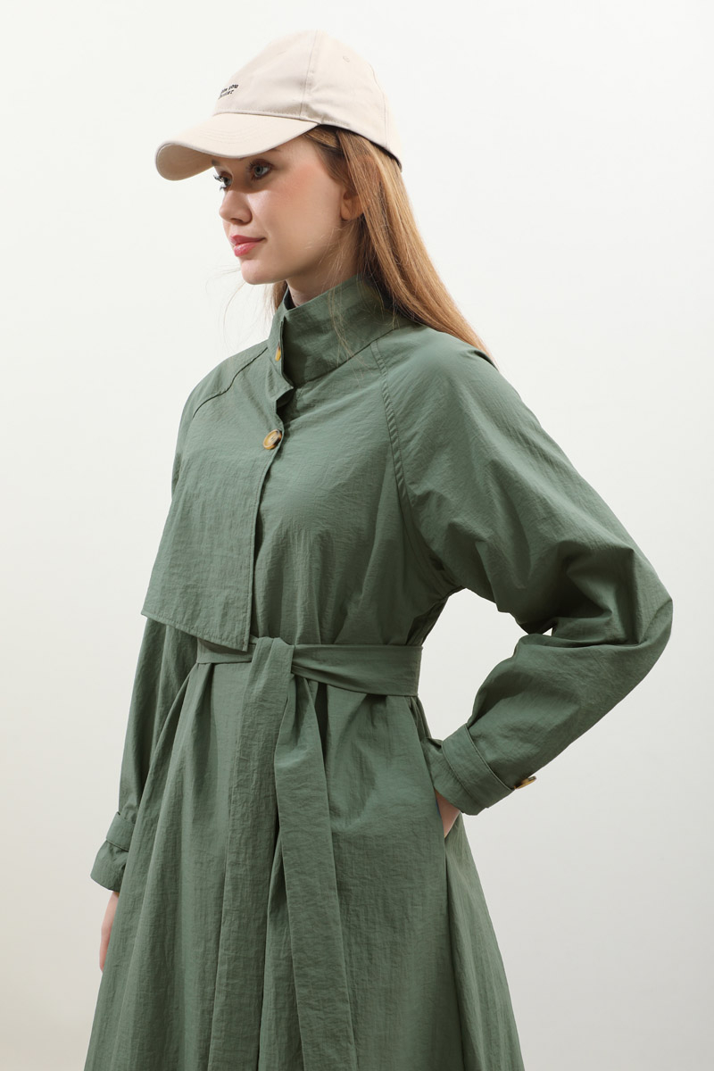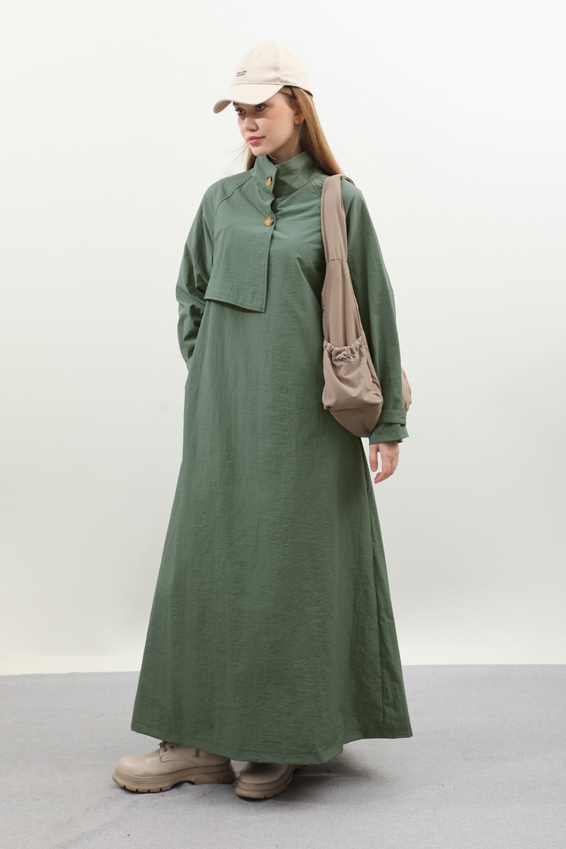 Yarım Rüzgarlıklı Paraşüt Elbise Zümrüt. Balıkçı yakadır, önden düğmelidir, reglan kolludur, hareketli rüzgarlık detaylıdır, manşetleri ayarlanabilir kemerlidir, astarlıdır, yandan ceplidir, kuşaklıdır, Günlük kullanım ve özel günlerinizde tercih edebilirsiniz.