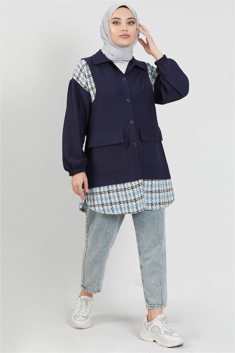 Yelek Detaylı Gömlek Lacivert