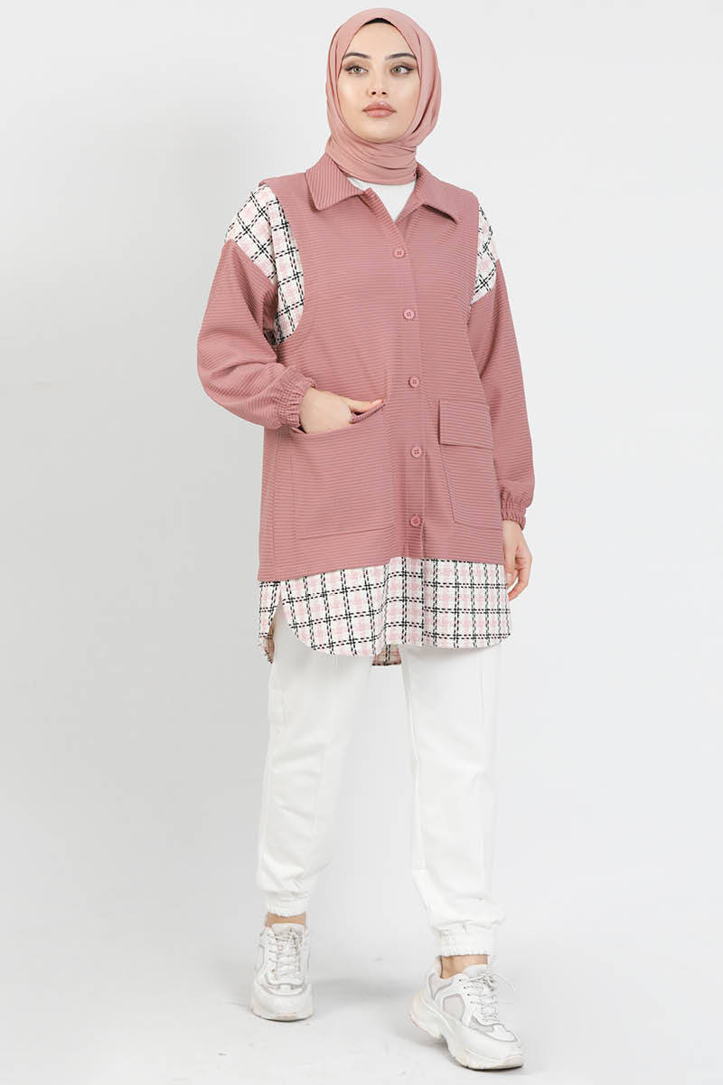Yelek Detaylı Gömlek Pudra