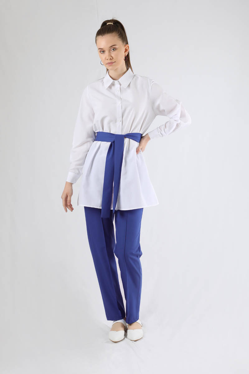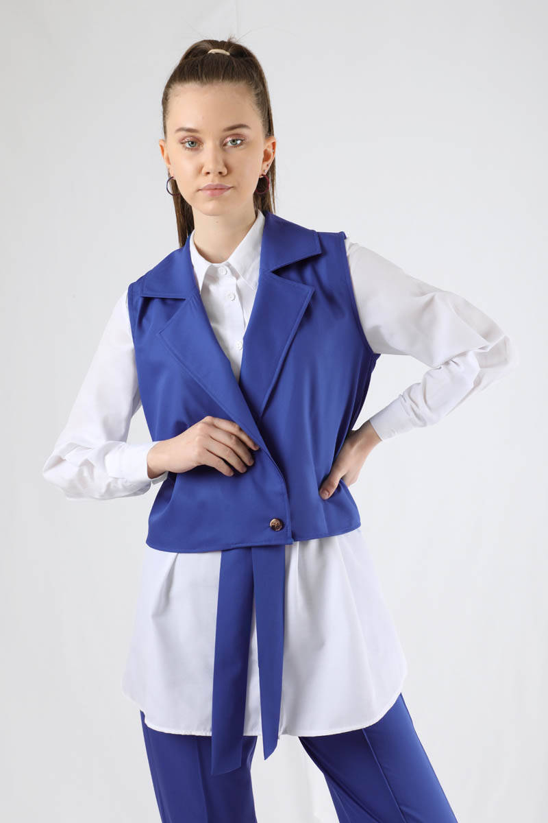 Yelekli Kuşaklı Üçlü Takım İndigo