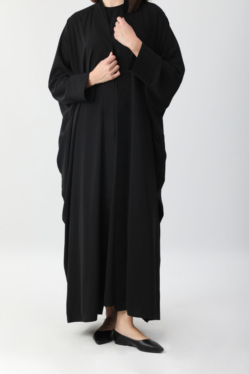 Yezra Abaya Siyah. Abaya önde fleto ilik ve ince ip biyesi bulunmaktadır yarasa kolludur, yandan ceplidir, Geniş manşetlidir. astarsız. İçliği bisiklet yakadır, arkadan gizli fermuarlıdır. Günlük kullanım ve özel günlerinizde tercih edebilirsiniz.