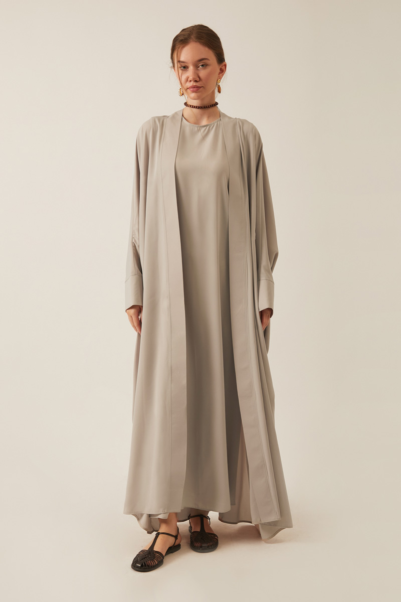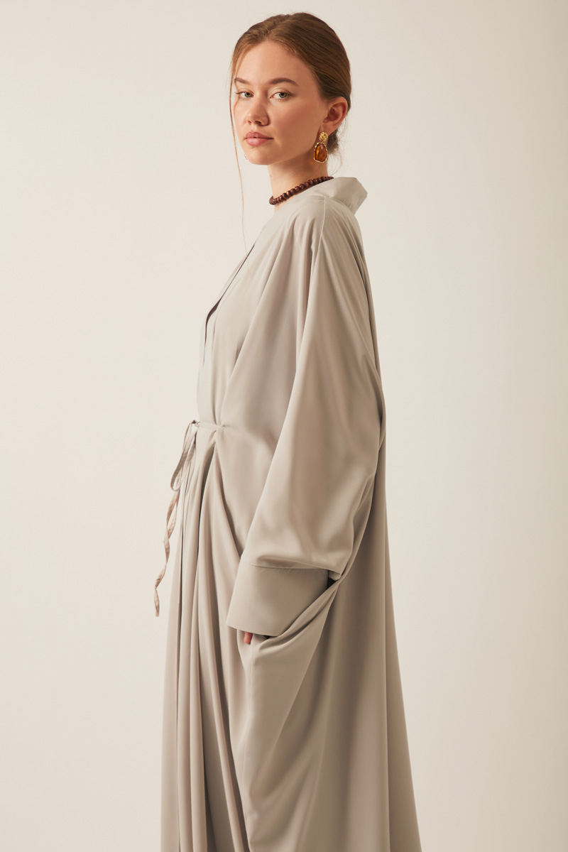 Yezra Abaya Taş. Abaya önde fleto ilik ve ince ip biyesi bulunmaktadır yarasa kolludur, yandan ceplidir, Geniş manşetlidir, astarsız. İçliği bisiklet yakadır, arkadan gizli fermuarlıdır. Günlük kullanım ve özel günlerinizde tercih edebilirsiniz.