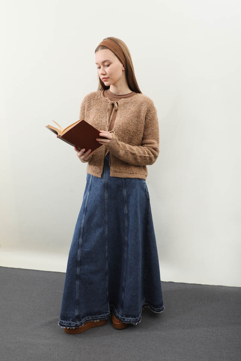 Yıkamalı Dikiş Detaylı Denim Etek Mavi. Belden pervazlıdır, ön arka dikiş detaylıdır, yandan fermuarlıdır, etek ucu kendinden püskül detaylıdır. cepsizdir, astarsızdır. Günlük kullanım ve özel günlerinizde tercih edebilirsiniz.