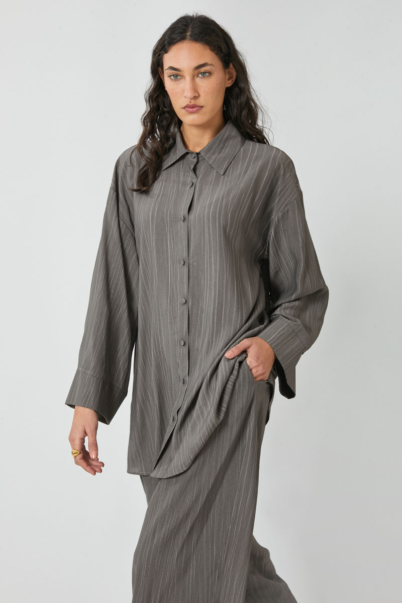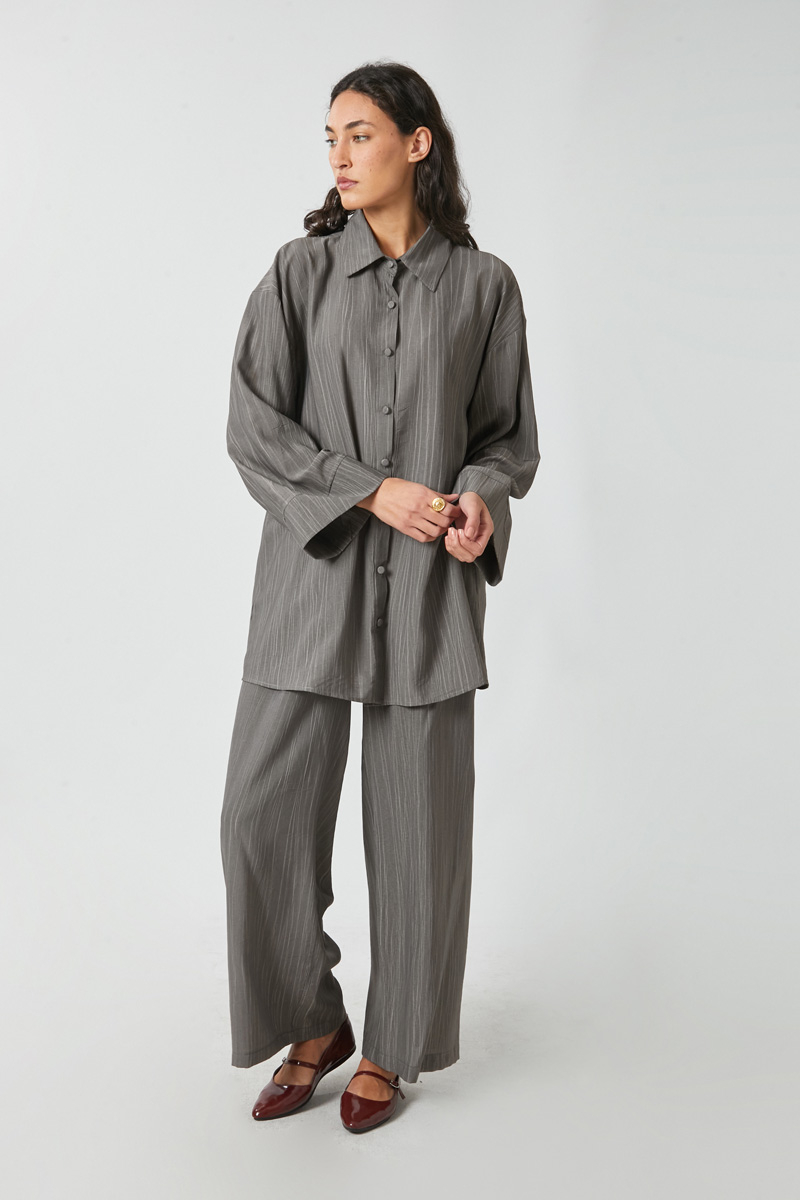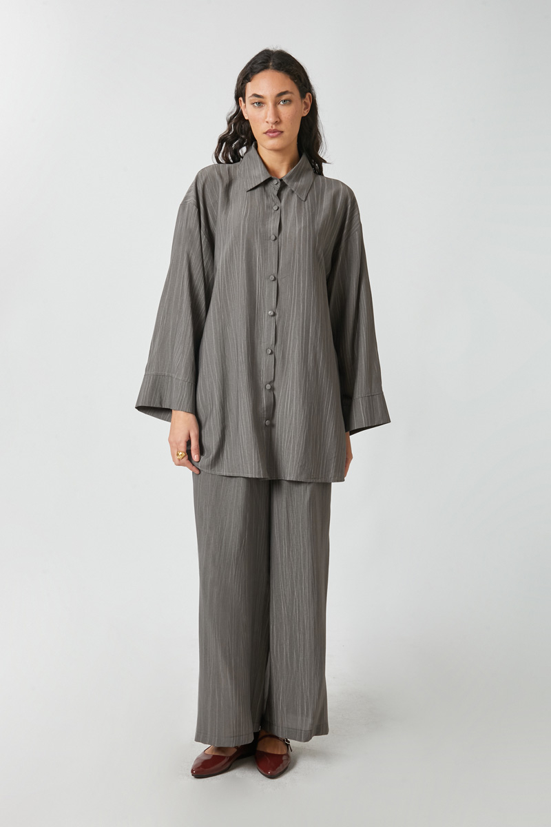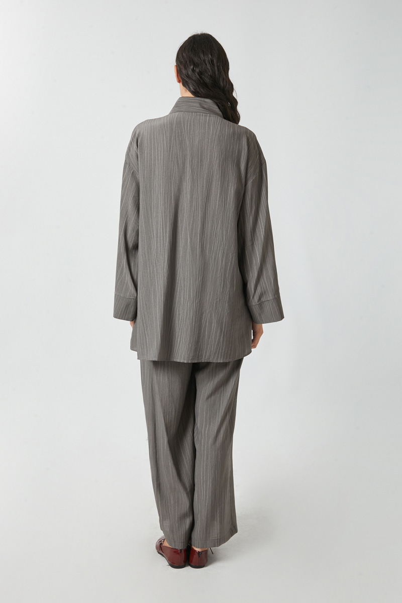 Yıkamalı Tunik Takım Antrasit. Gömlek yakadır, önden düğmelidir, düşük kolludur. Pantolon: belden büzgülü olup arka belden lastiklidir, yandan gizli fermuarlıdır. Günlük kullanım ve özel günlerinizde tercih edebilirsiniz.