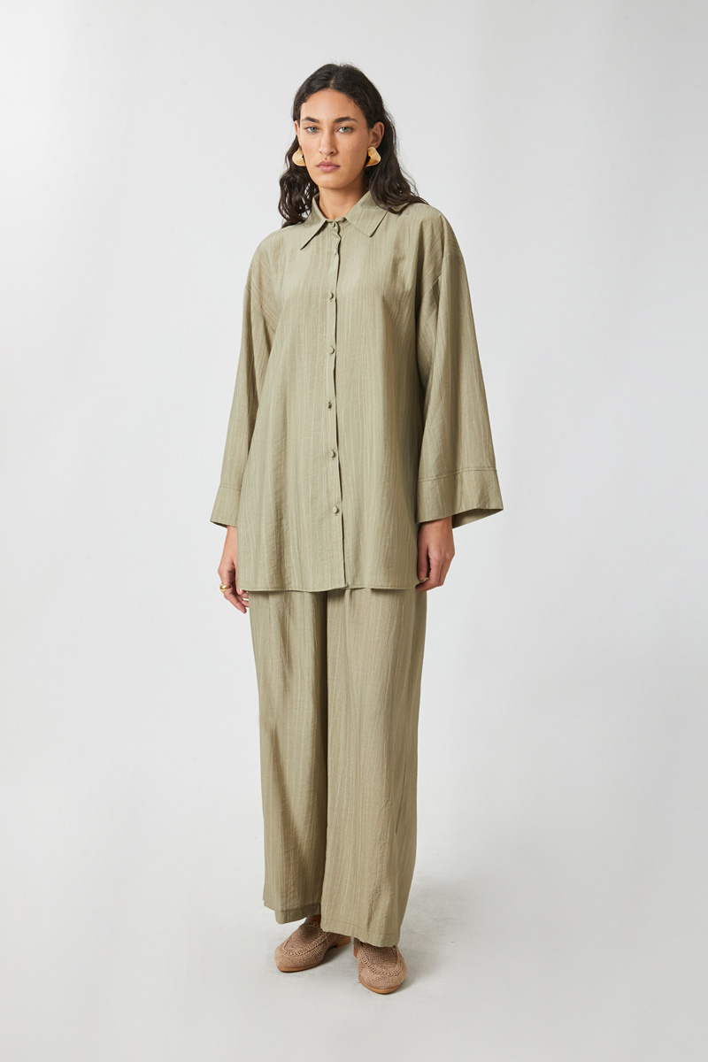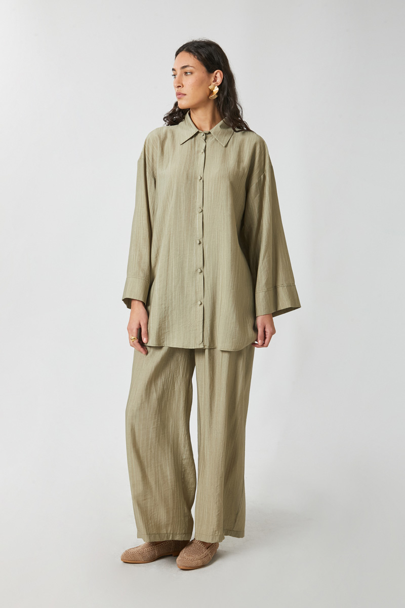 Yıkamalı Tunik Takım Haki. Gömlek yakadır, önden düğmelidir, düşük kolludur. Pantolon: belden büzgülü olup arka belden lastiklidir, yandan gizli fermuarlıdır. Günlük kullanım ve özel günlerinizde tercih edebilirsiniz.