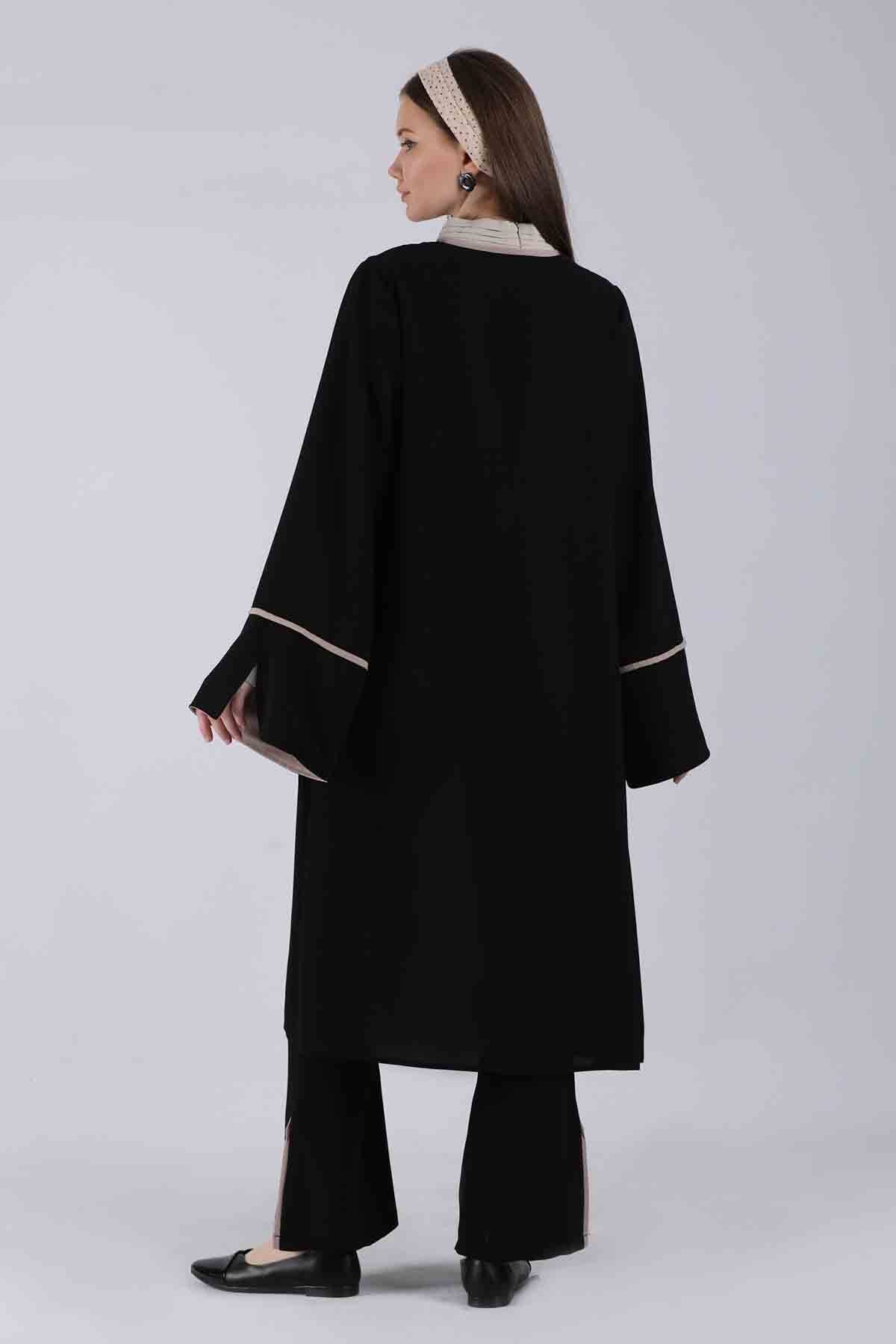 Slit Abaya Set Black. The slit detail on the trousers and abaya takes the product to a whole new level. It is the favorite product of the new season.