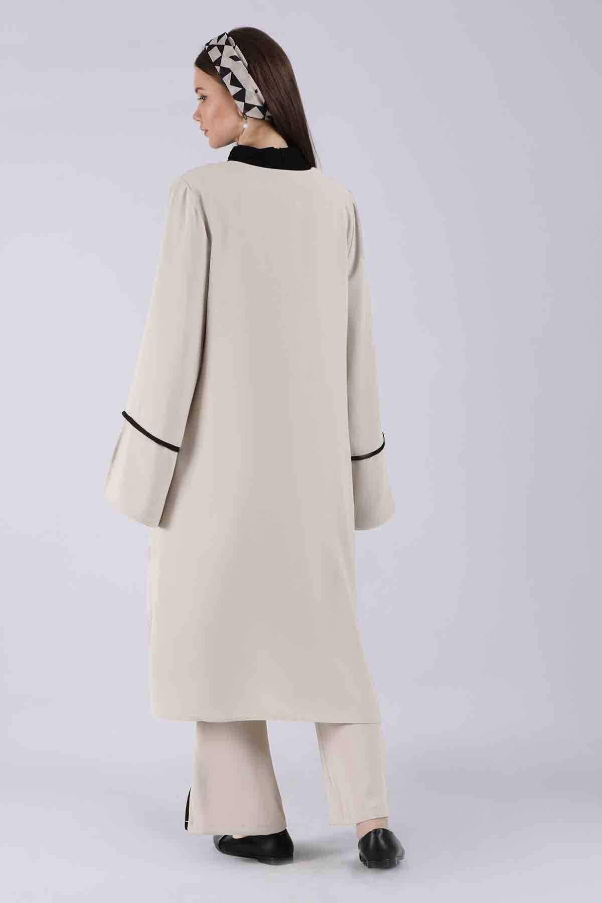 Yırtmaçlı Abaya Takım Taş. Pantolon ve Abayadaki yırtmaç detayı ürünü bambaşka bir seviyeye taşımaktadır. Yeni sezonun favori ürünüdür.
